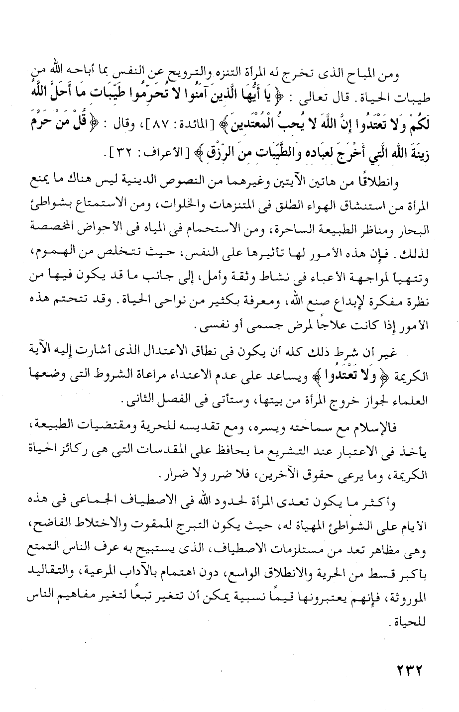 العلماء لجواز خروج المرآة من بيتها، وستأتى فى الفصل الثانى.