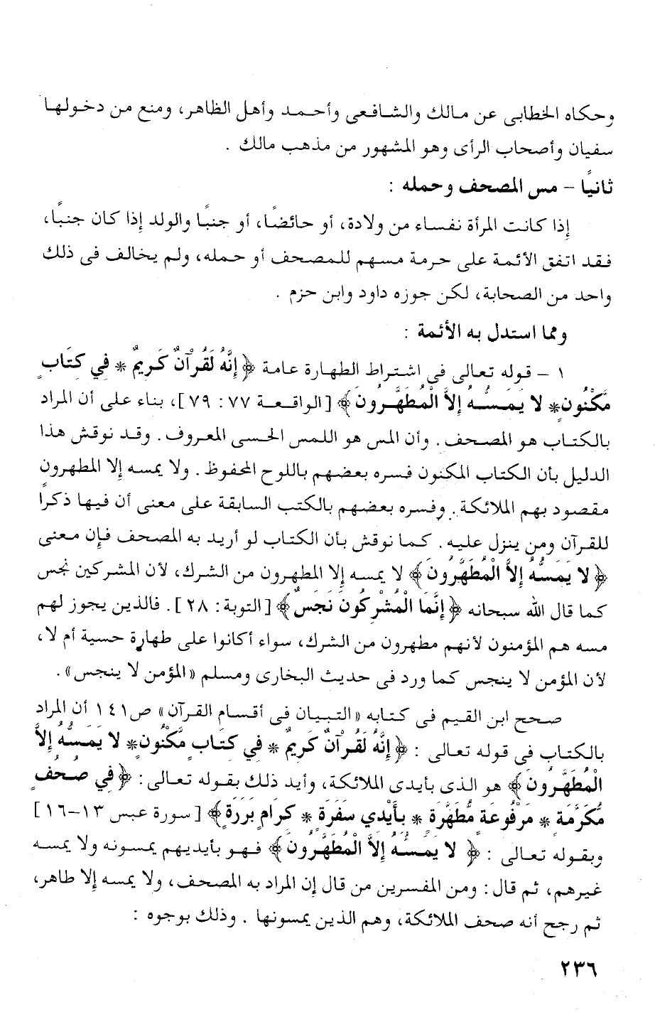 1 - قوله بعالعت صب اشتراط الطهارة! 1 مى ل! إنه لقرآن كريم بهر! ي كتاب