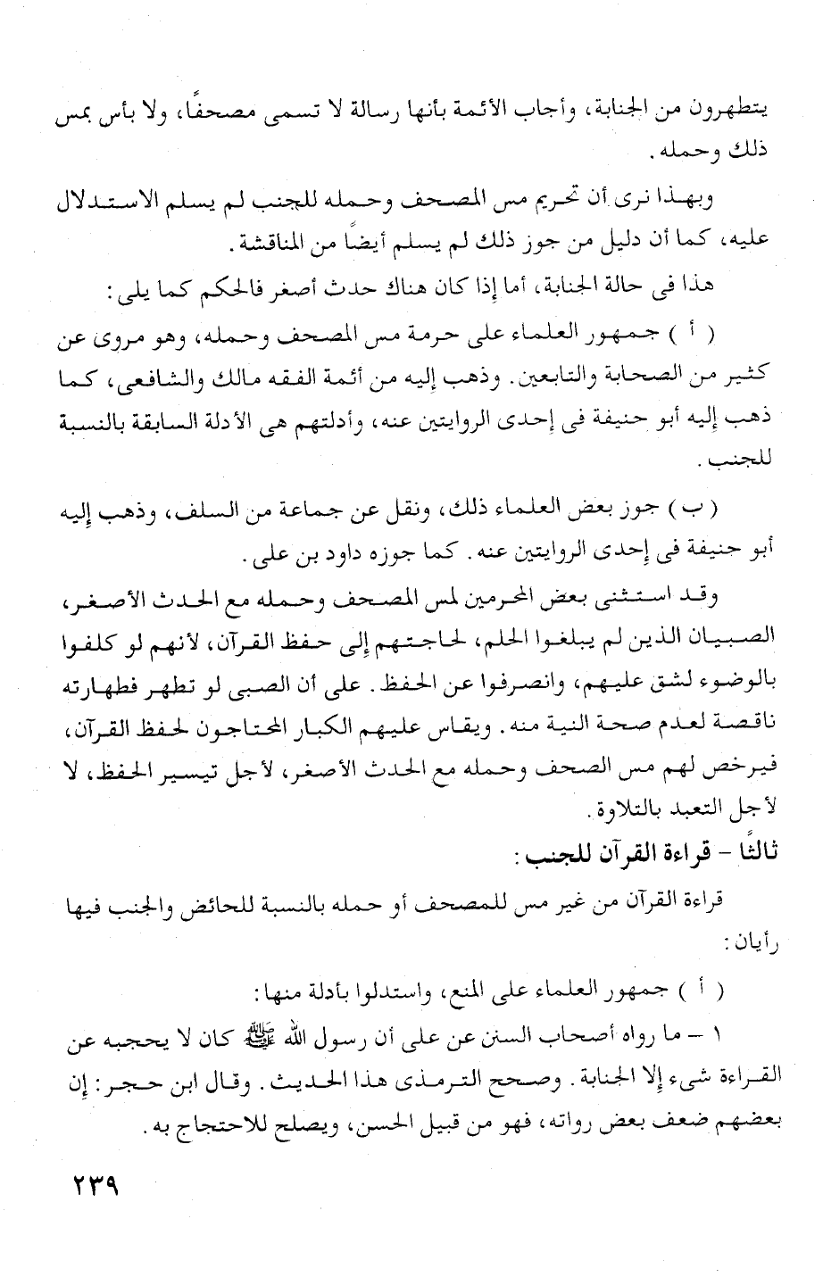 القراءة شع! ء إ، اجنابة. وصحح!! الترمذى هذ! الحديث. وقال ابن حجر: إ ن