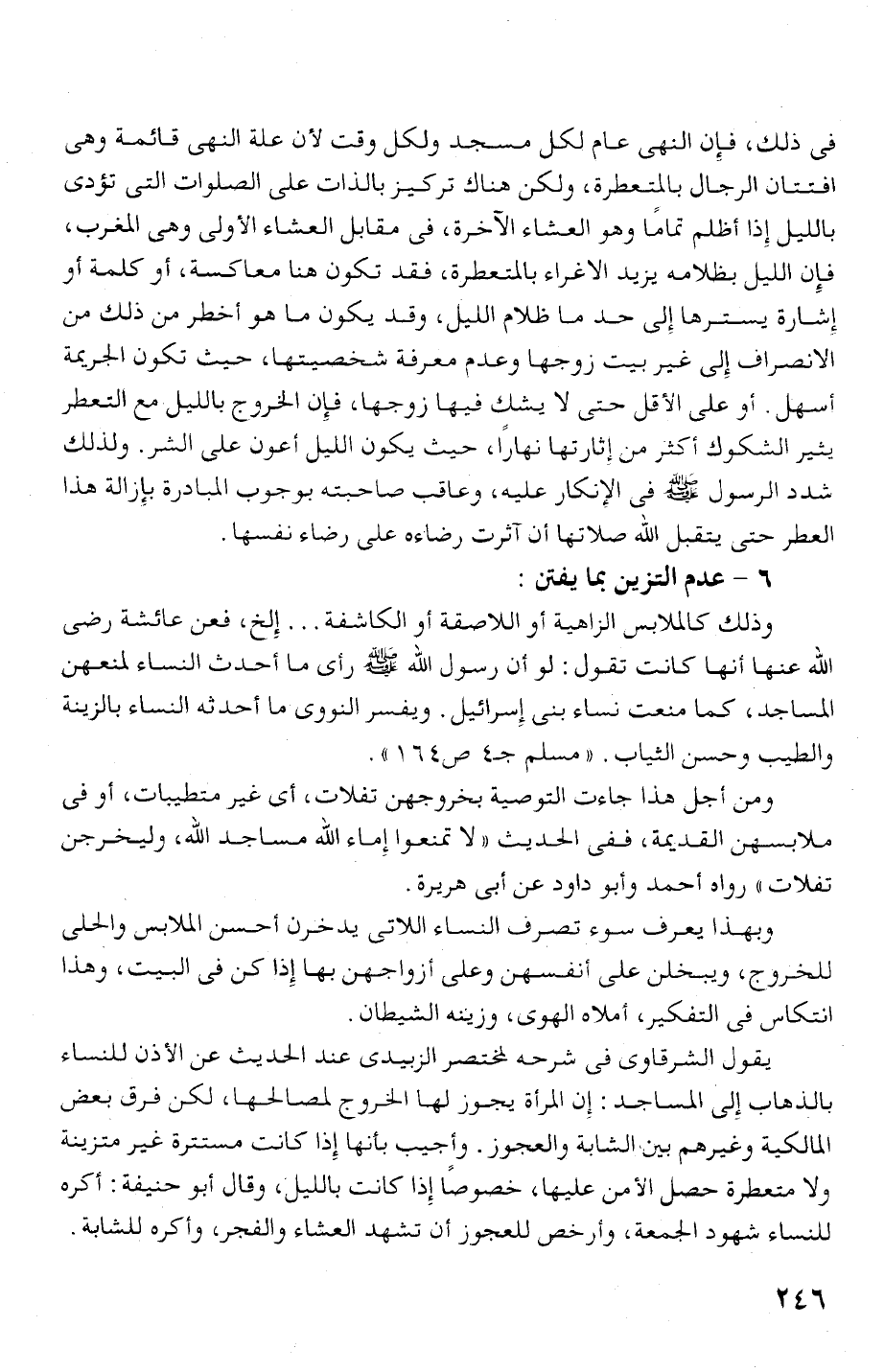 ومن أجل كحذا جاءت التوصية بخروجهن تفلات، أف غير متطيبات، أو فى