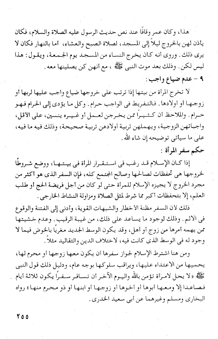 ومن هنا اشترط الإخملام لجواز سفرها أدت يكون معها زوجها أو محرم لها،