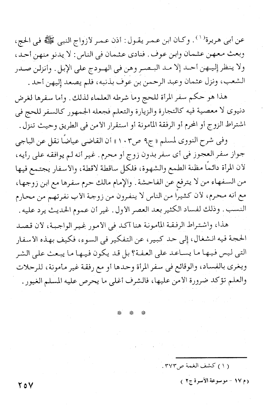 ويغرى بالفساد، والوقائع فى سفر المرأة وحدها أو مع رفقة غير مأمونة، للرحلات