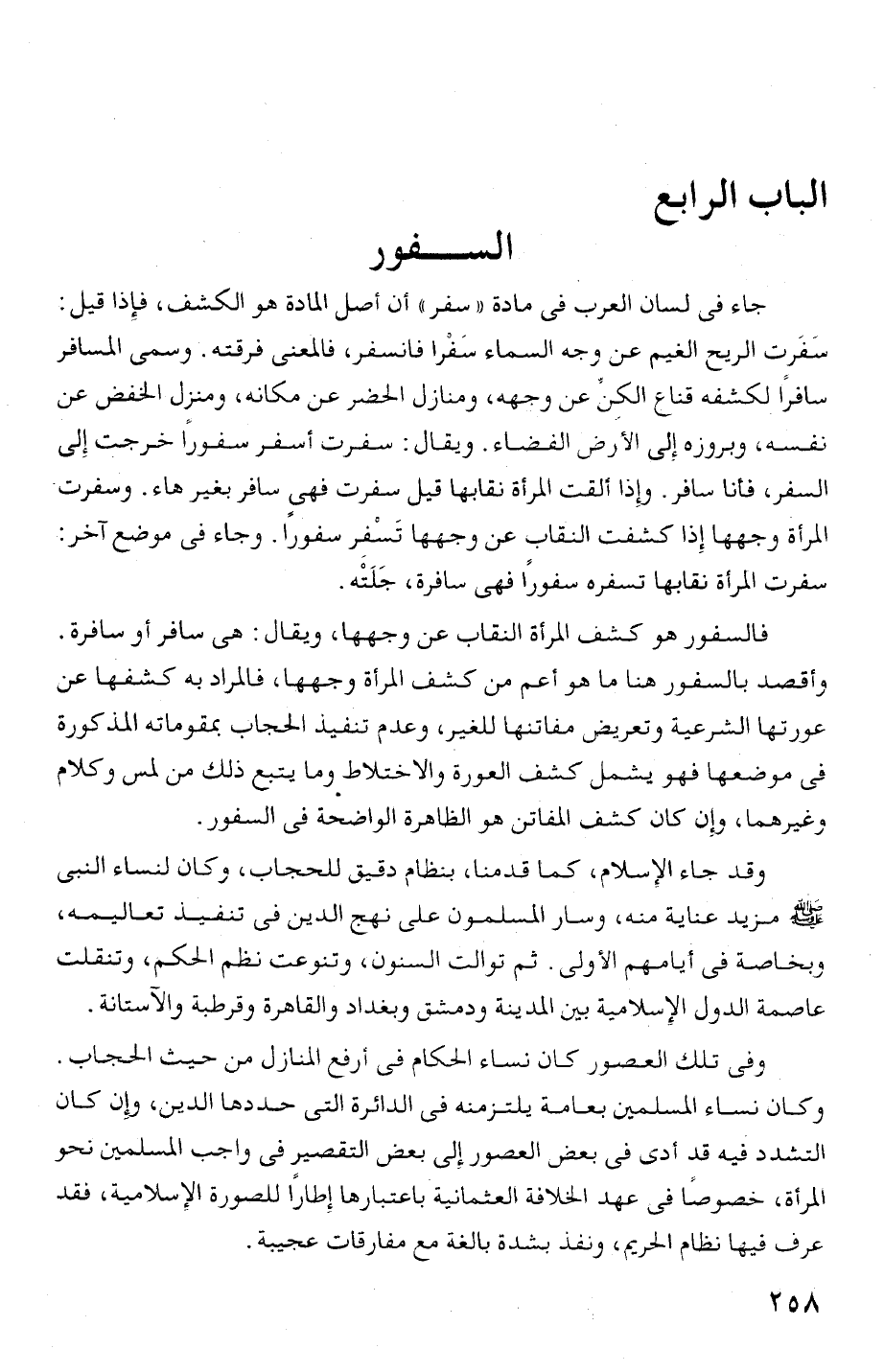 وأقصد بالسفور هنا ما هو أعم من! شف المرأة وجهها، فالمراد به ثشفها عن