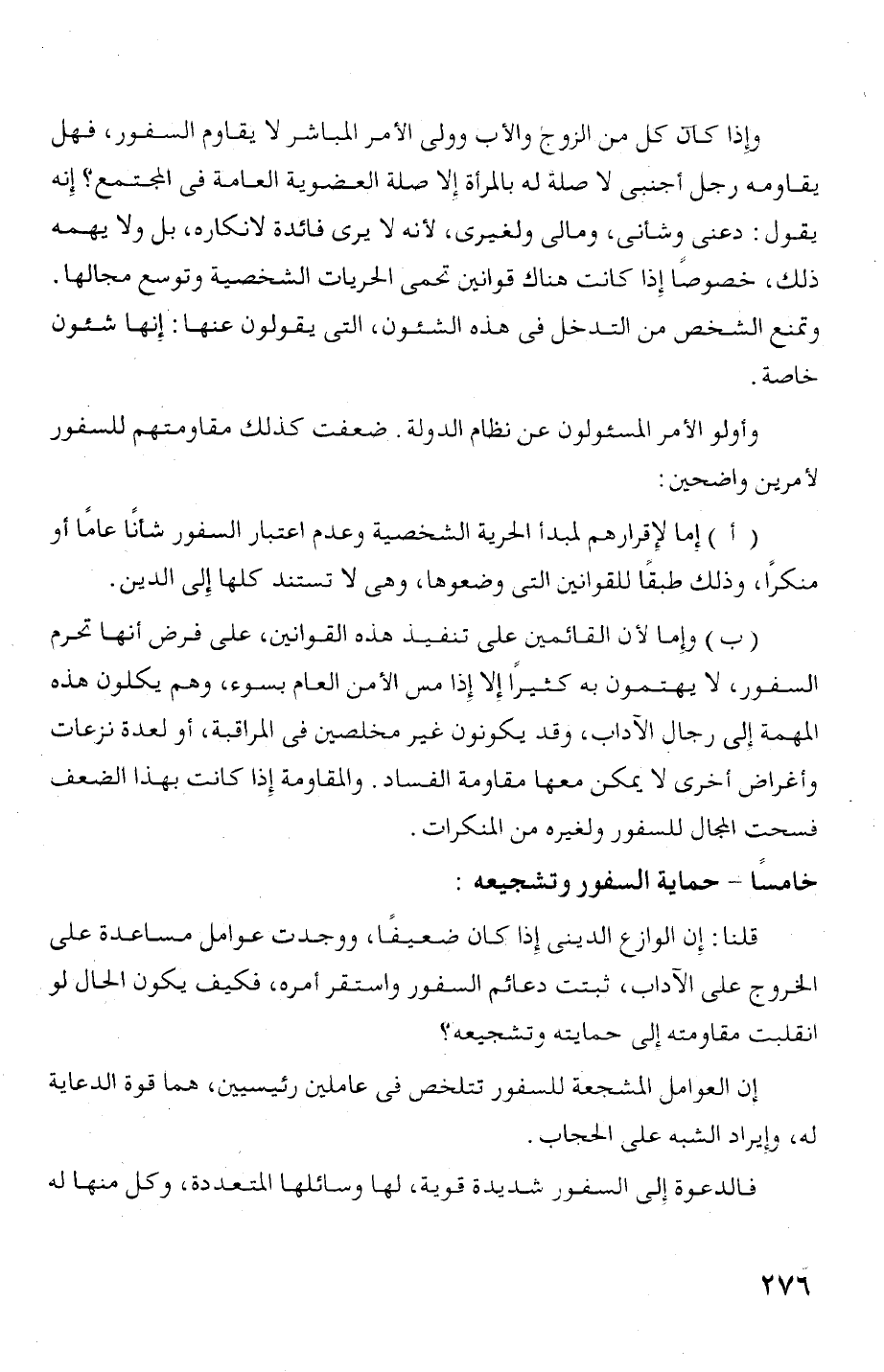 خامسا - حماية السفور وتشجيعه: