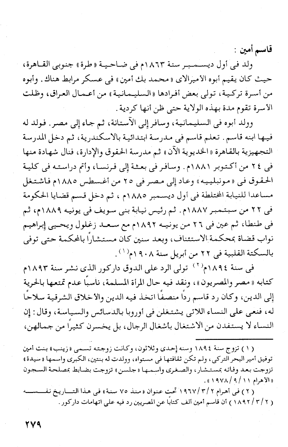 (2 131 1862) أن قاسم أمين ألف كتائا عن المصريين رد فيه على اتهامات داركور.