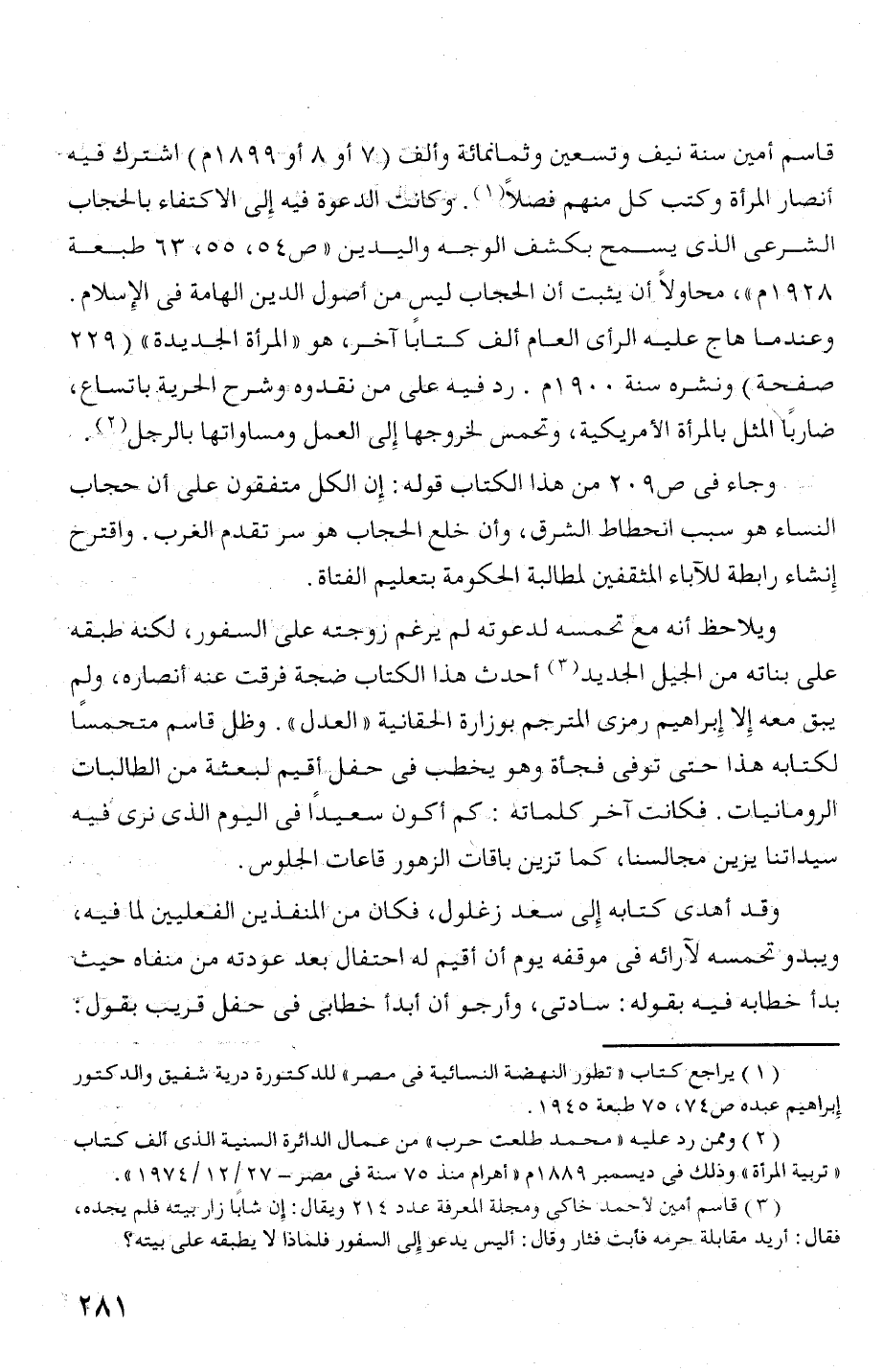 928 1 م "، محاولا أدن يثبت أن الحجاب ليس من أصول الدين الهامة فى الإسلام.