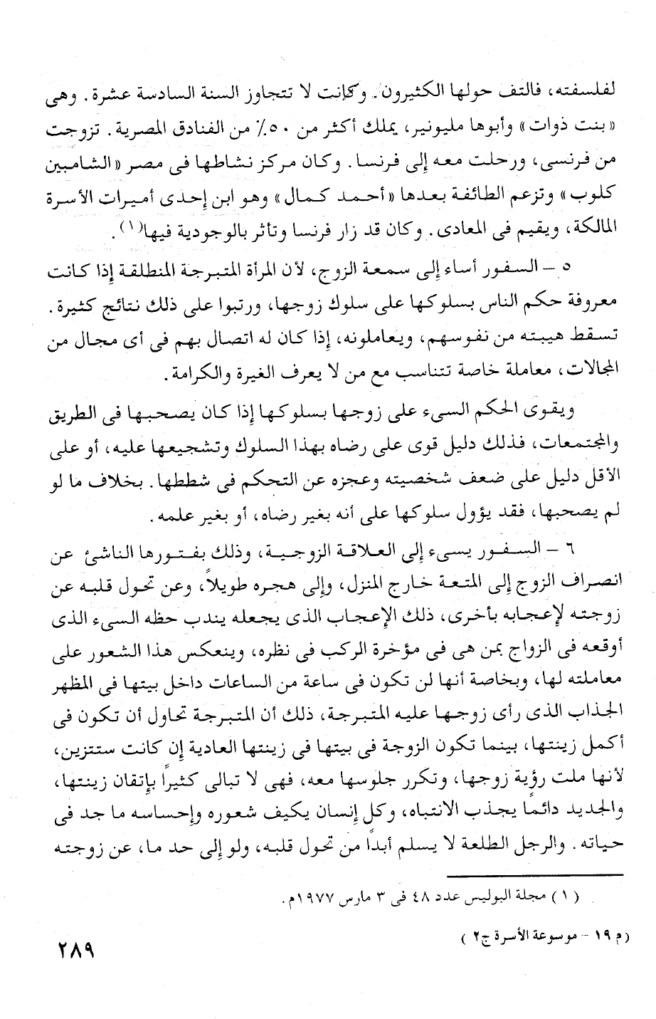 ويقوى الحكم السىء على زوجها بسلو حها إذا كان يصحبها فى الطريق