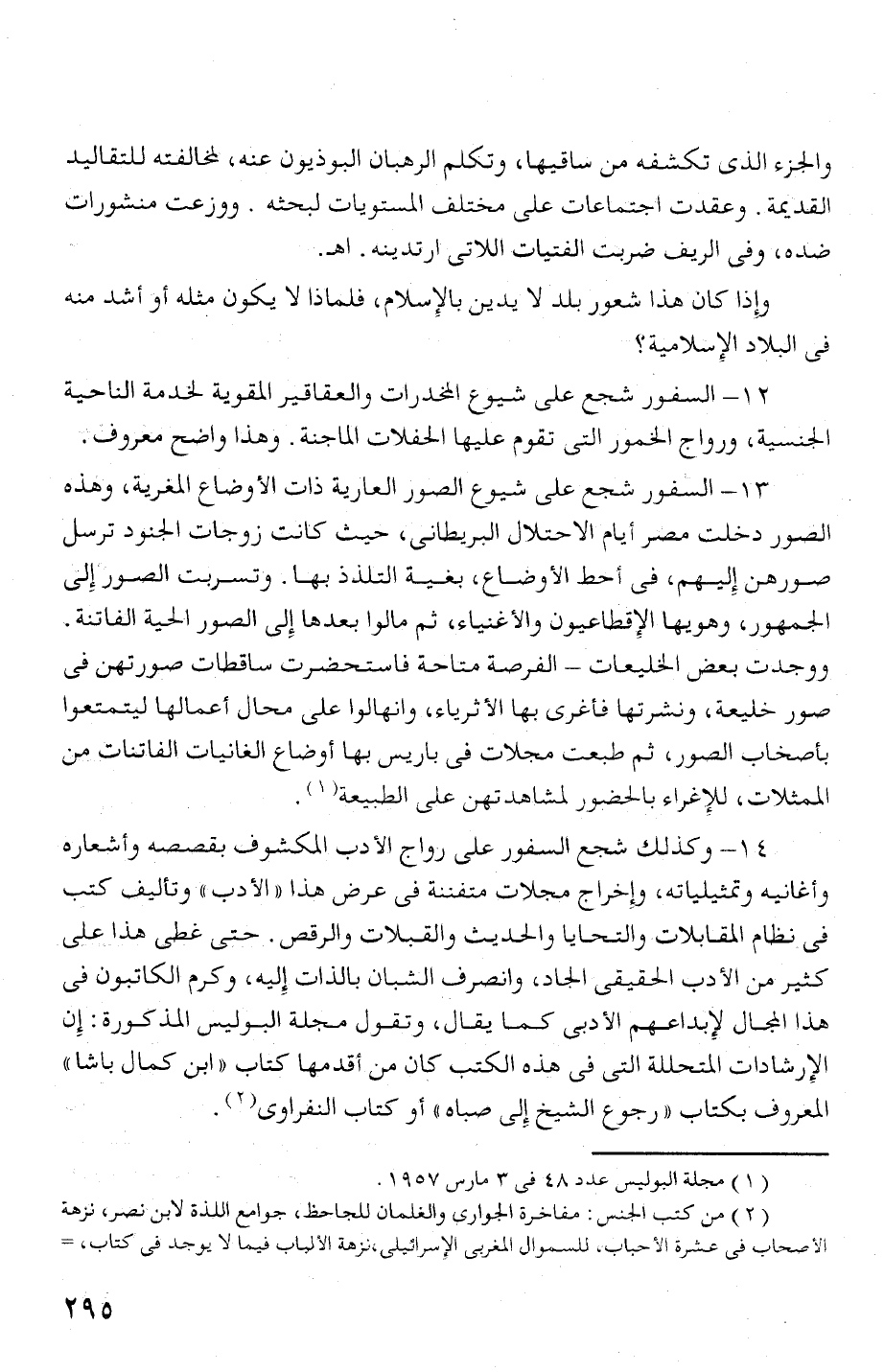 13 - السفور شجع على شيوع الحمور العارية ذات الأ وضاع المغرية، ومذه
