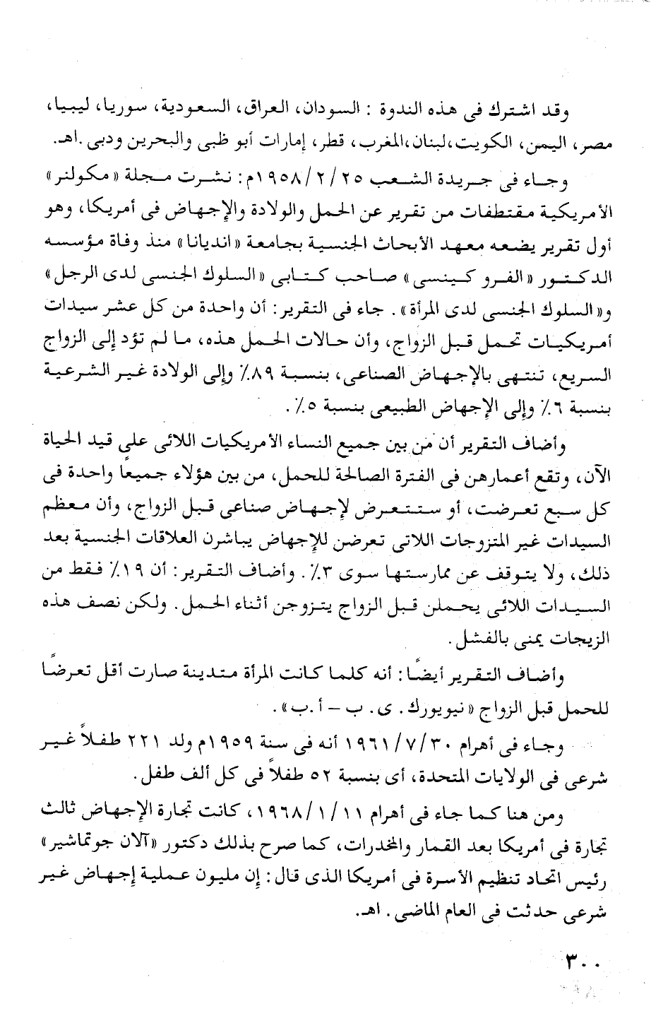 و" السلوك الجنسى لدف المرآة ". جاء فى التقرير: آن واحدة من ول عشر سيدات