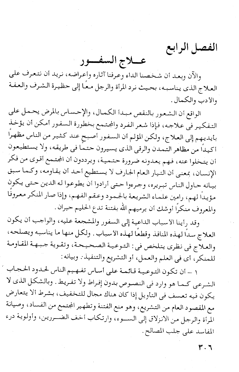 وقد رأينا الم! سباب الداعية إلى السفور والمشجعة عليه، والواجب أن يكون