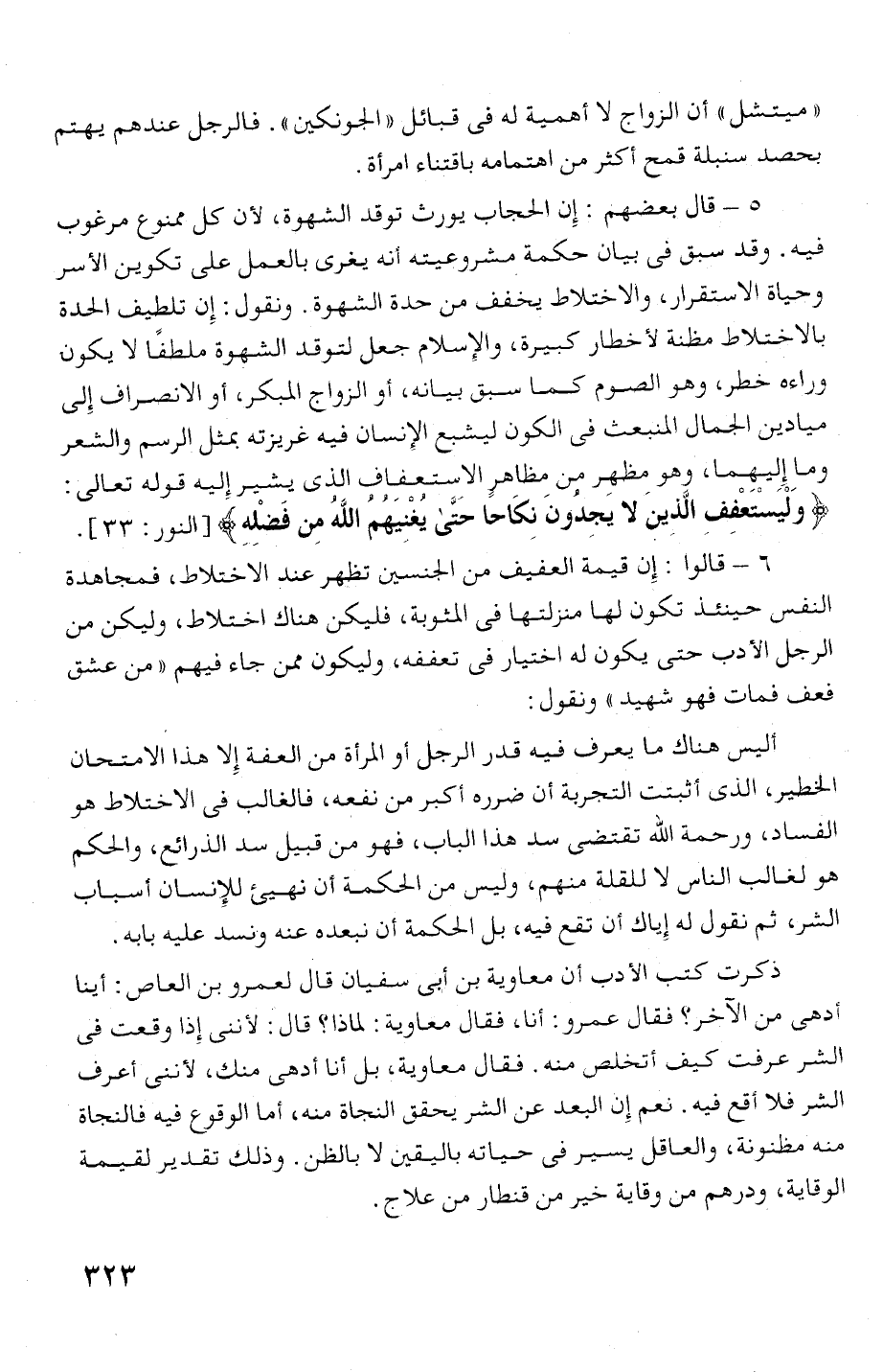 وحياة الاستقرار، والاختلاط يخفف من حدة الشهوة. ونقول: إن تلطيف الحدة