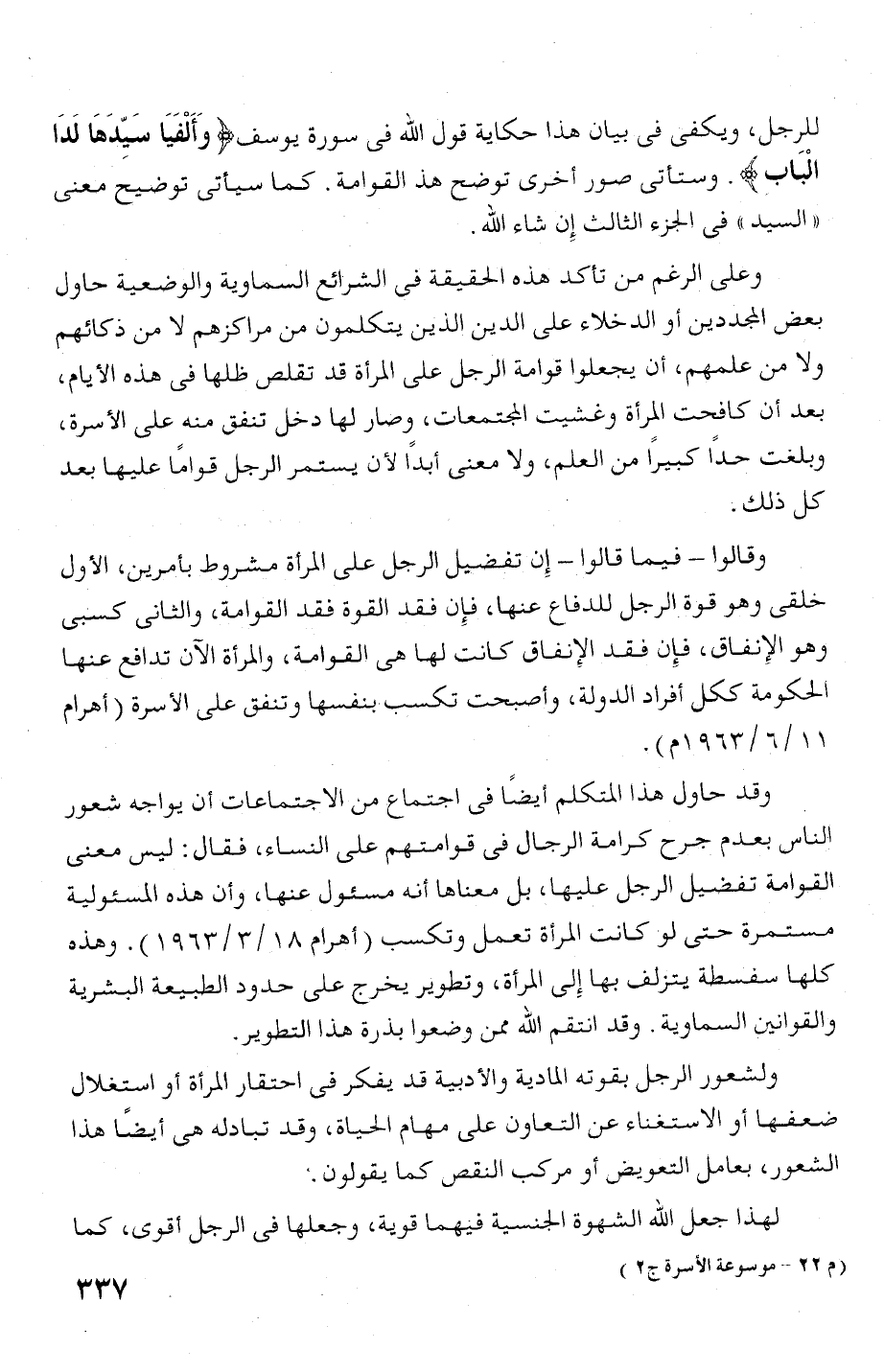 ولا من علمهم، أن يجعلوا قوامة الرجل على المرأة قد تقلص ظلها! ى مذه الأ يام،