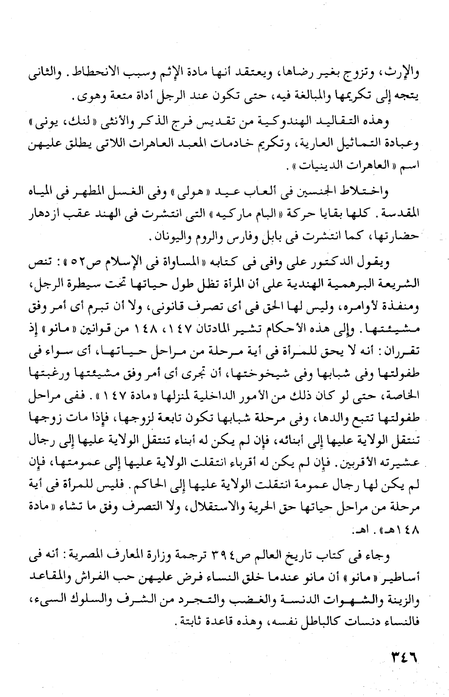 ويقول الد كتور على وافى فى! تابه " المساواة فى الإسلام ص 52 دا: تنص