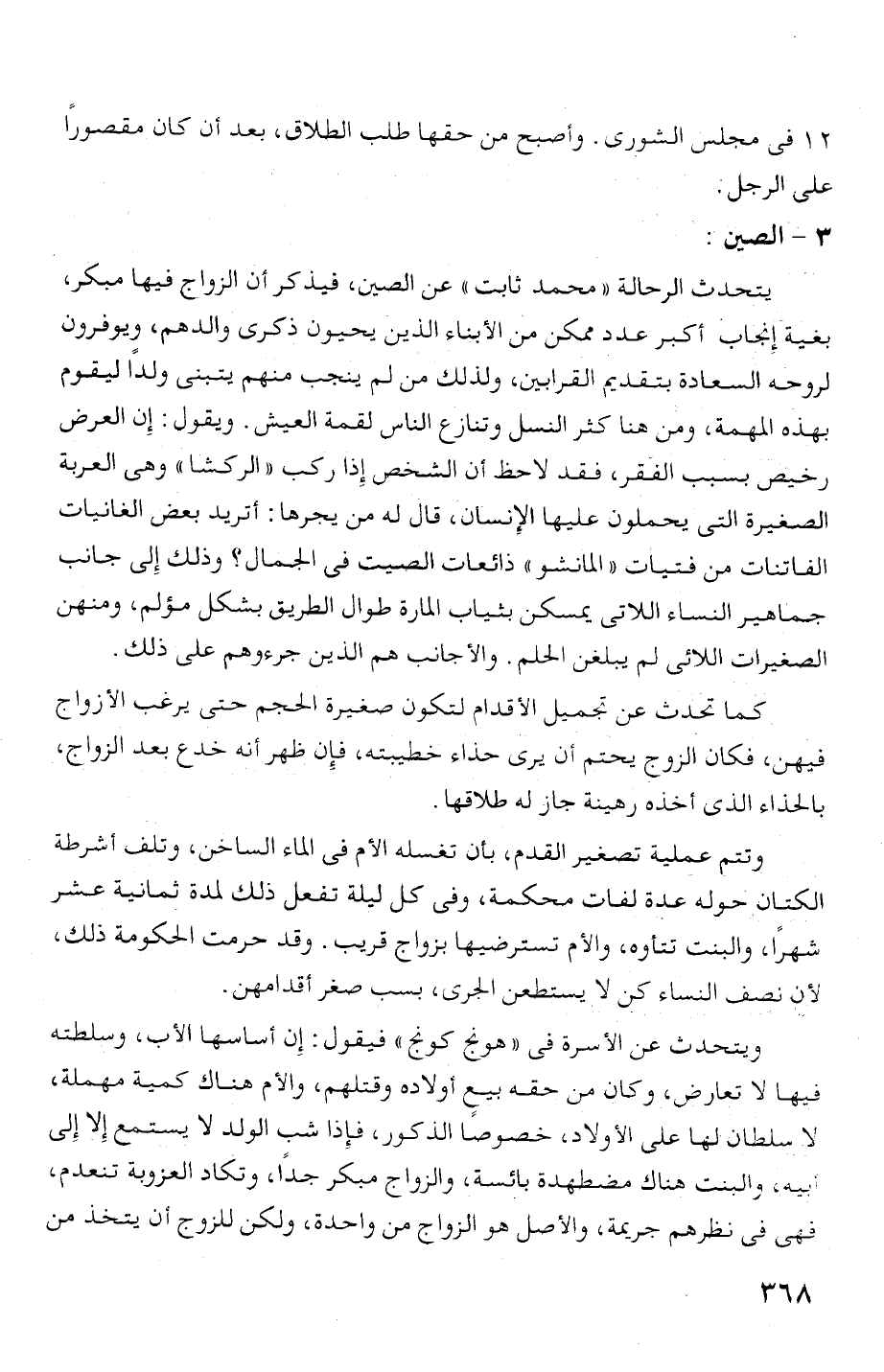 يتحدث الرحالة ((محمد ثابت " عن الصين، فيذ! ر أن الزواج فيها مبكر،
