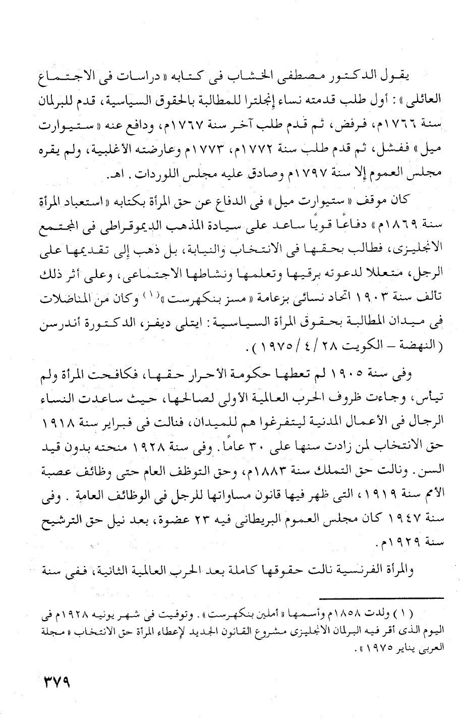 الانجليز!، فطالب بحقها فى الانتخاب والنيابة، بل ذمب إلى تقديمها على
