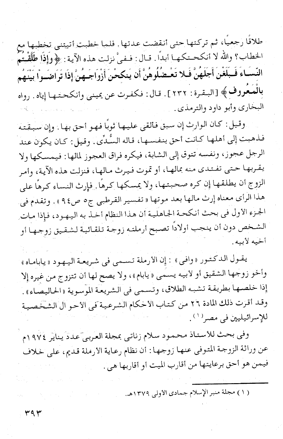هذا الرأى معناه إرت مالها بعد موتها " تفسير القرطبى ج ه ص 94 ". وتقد ا فى