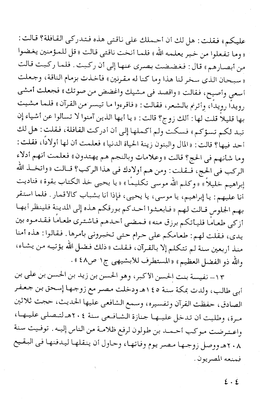 13 - نفيسة بنت الحسن الأ سبر، وهو الحسن بن زيد بن الحسن بن على بن