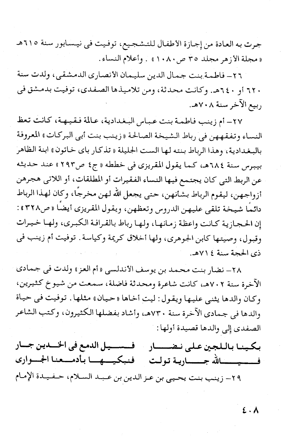 0 2 آ أو 0 4 6 ح!. وكانت محدثة، ومن تلاميذما الصفدئ، توفيت بدمشق فى