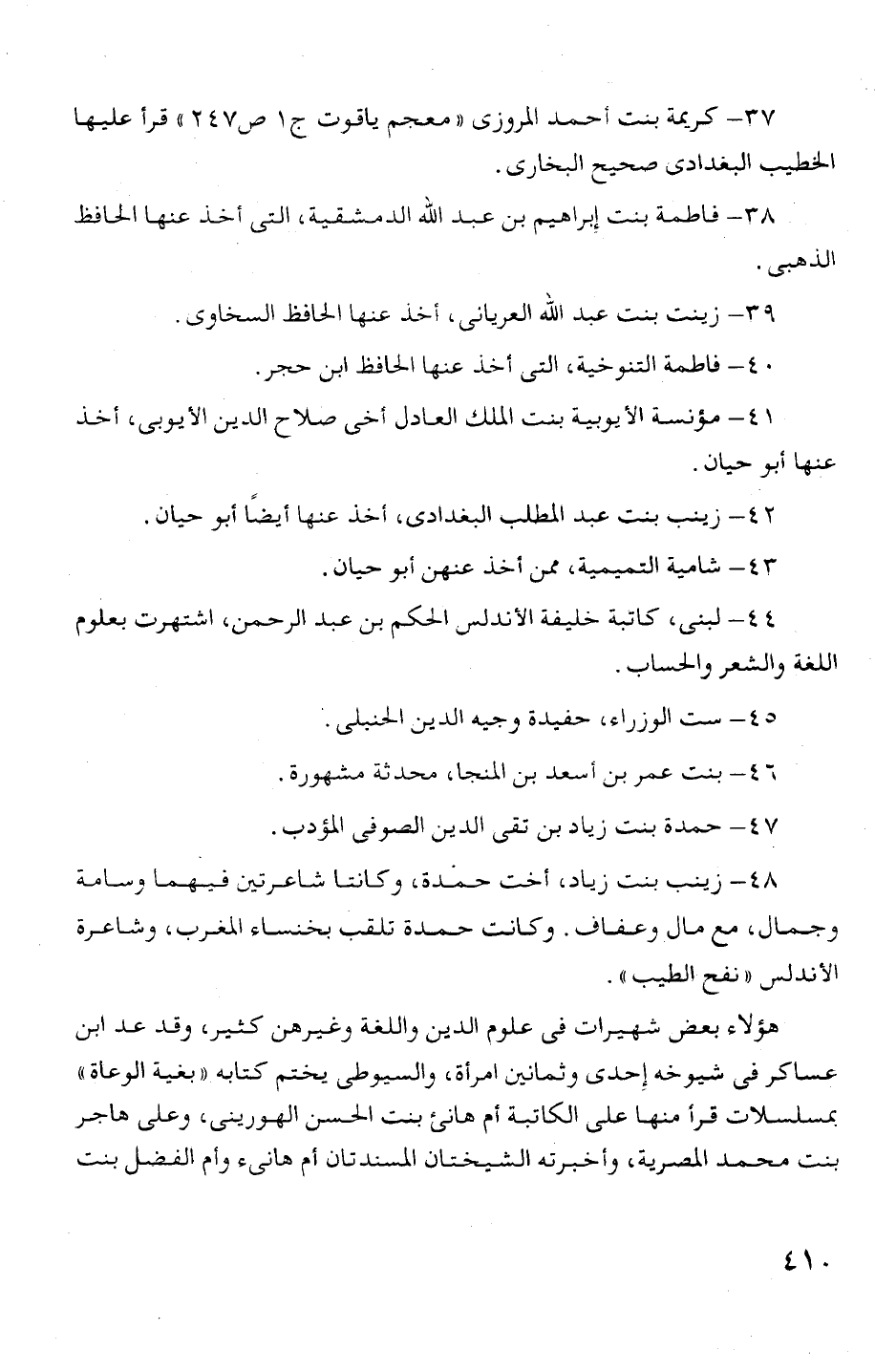 عسا! ص فع! شيوخه إحدى وثمانين امرأة، والسيوطئ يختم ثتابه " بغية الوعاة"