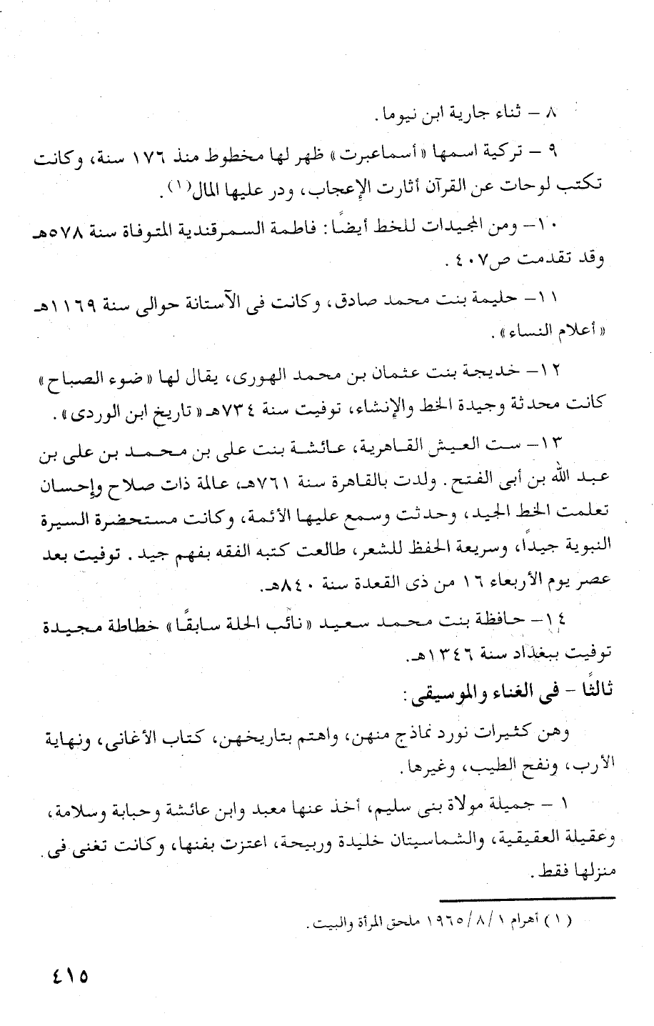 ا- و من المجيدات للخط أيفعا: فاطمه السمرقندية المتوفاة سنة 78 فى هـ