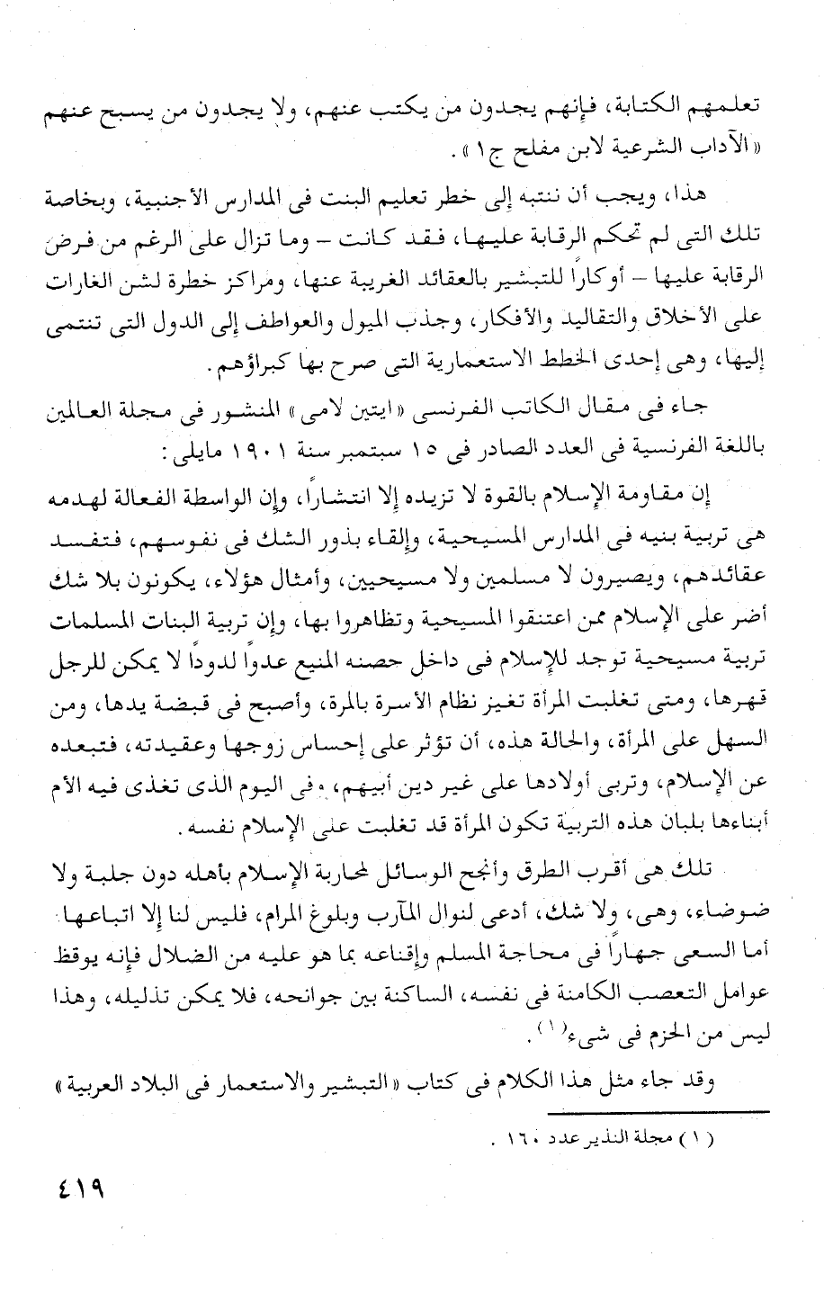 وقد جاء مثل شذا الكلا ا شئ حتاب ((التبشير والاستعمار في البلاد العربية))