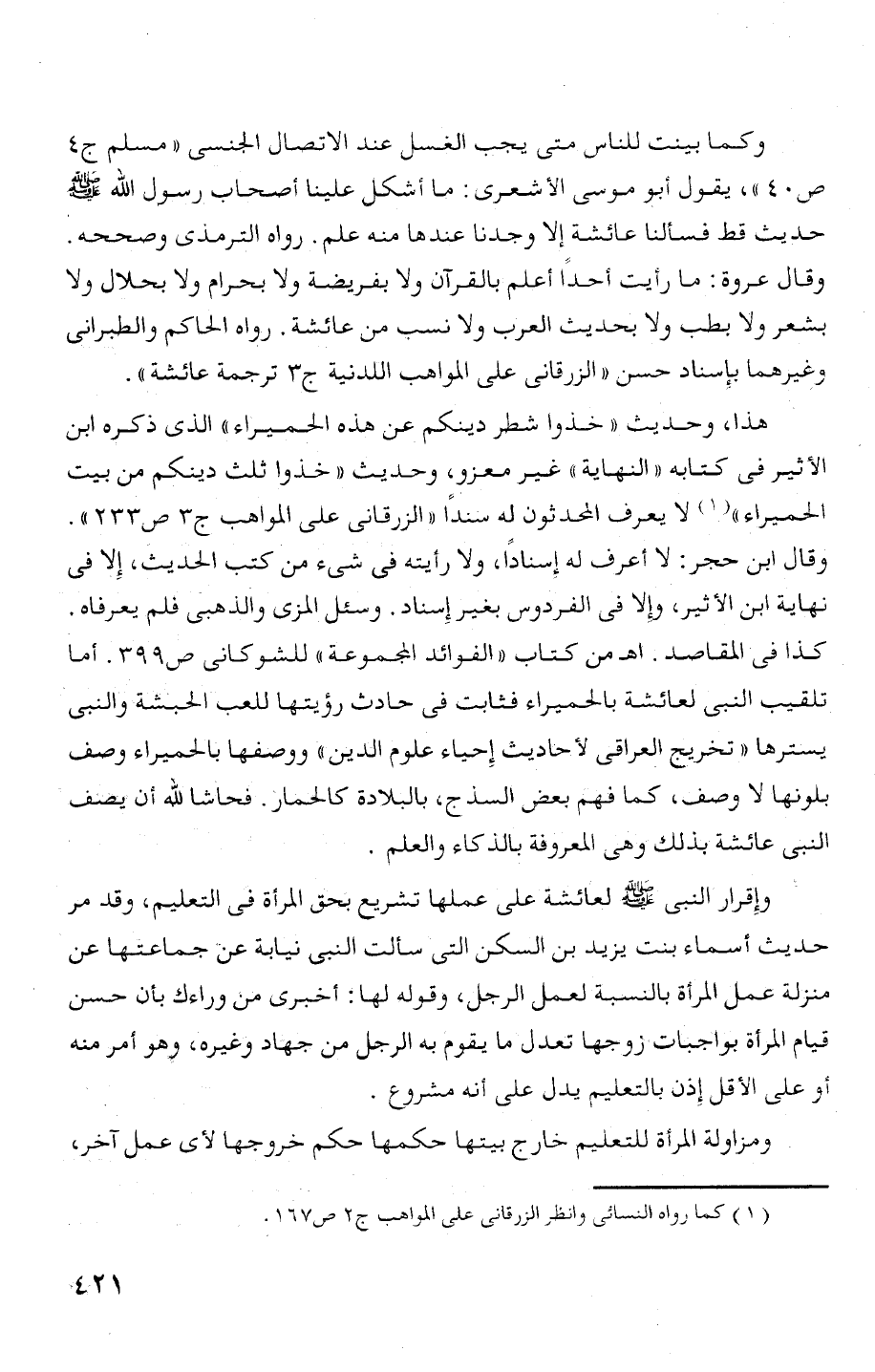 وإقرار النبى ط! بي لعائشة على عملها ت! ريع بحق المرأة فى! التحليم، وقد مر