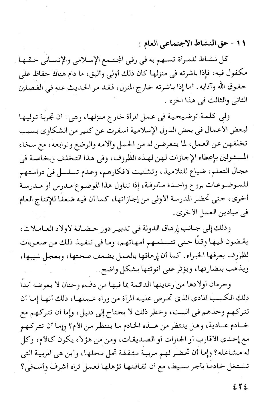 كل نشاط للمرأة تسهم به فى رقى المجتمع الإسلامع! والإنسانى حقها