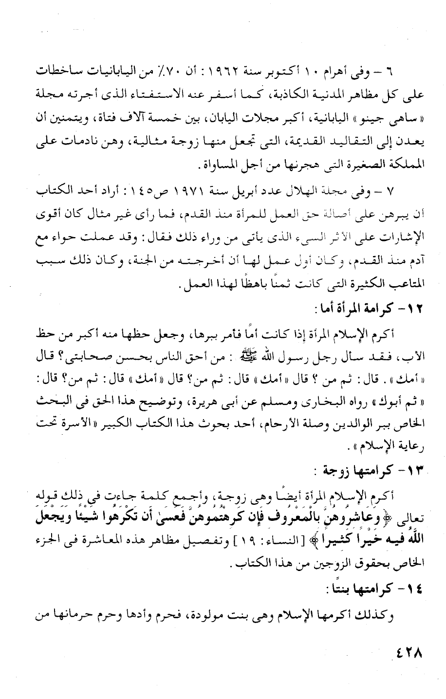 وكذلك أكرمها الإسلام وحى بنت مولودة، فحرم وأدما وصم صمانها من