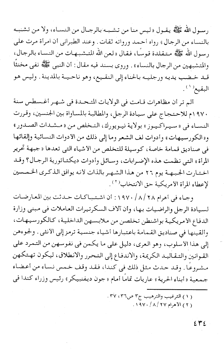 بالنساء من الرجال " رواه أحمد ورو اتة ثقات. وعند الطبرانى أن 1 مرآة مرت على