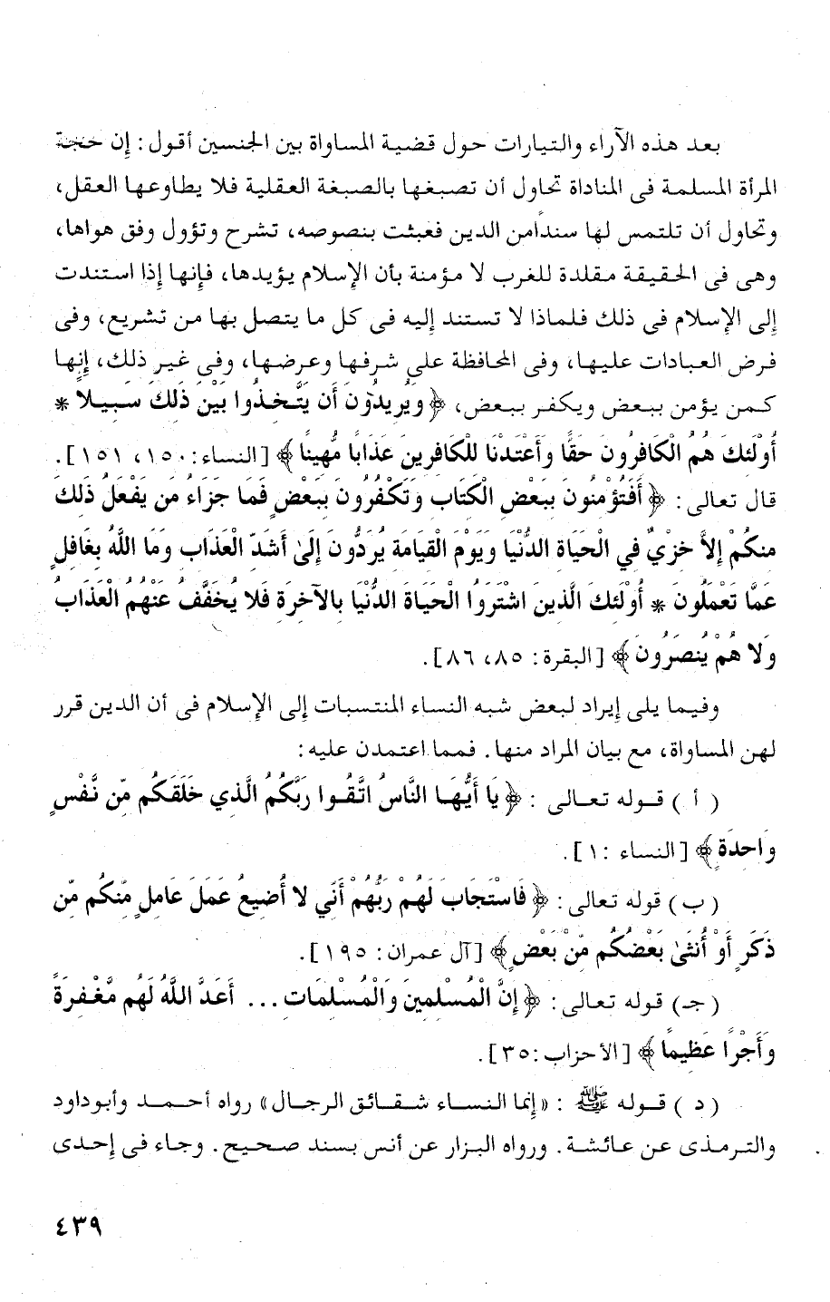 وفيما يلى إيراد لبعحش شبه النساء المنتسبات إلى الإسلام فى أن الدين قرر