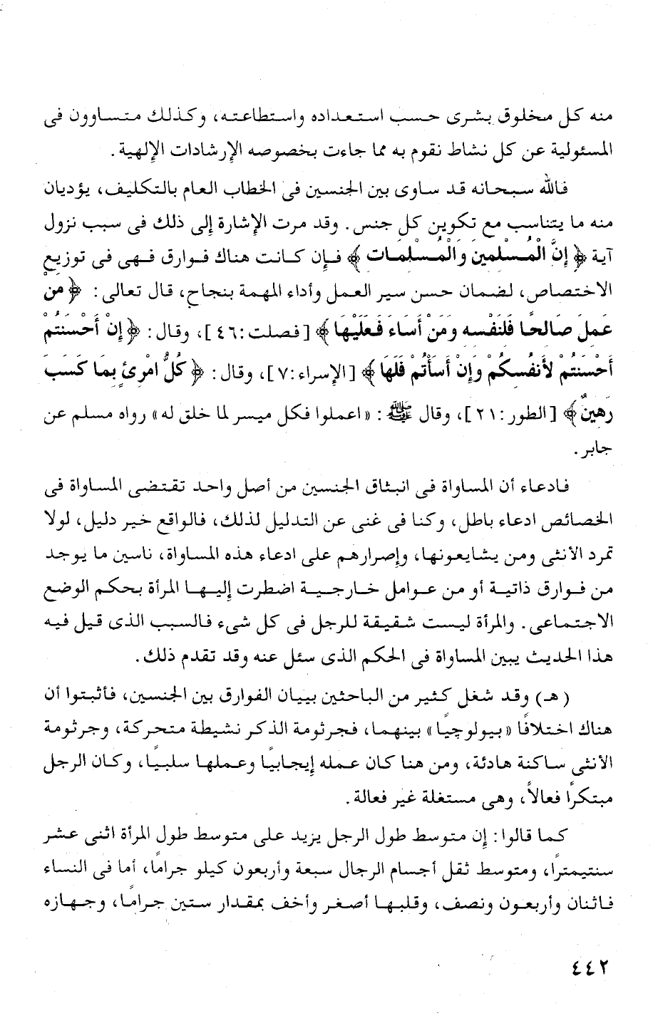 فالله سبحانه قد ساوى بين الجنسين فى الخطاب العام بالتكليف، يؤديان