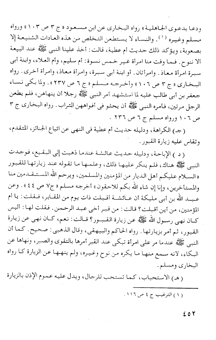 (د) ال! باحة، ودليله حد يث عائشة عندما ذهبت إلى البقيع، فوجدت