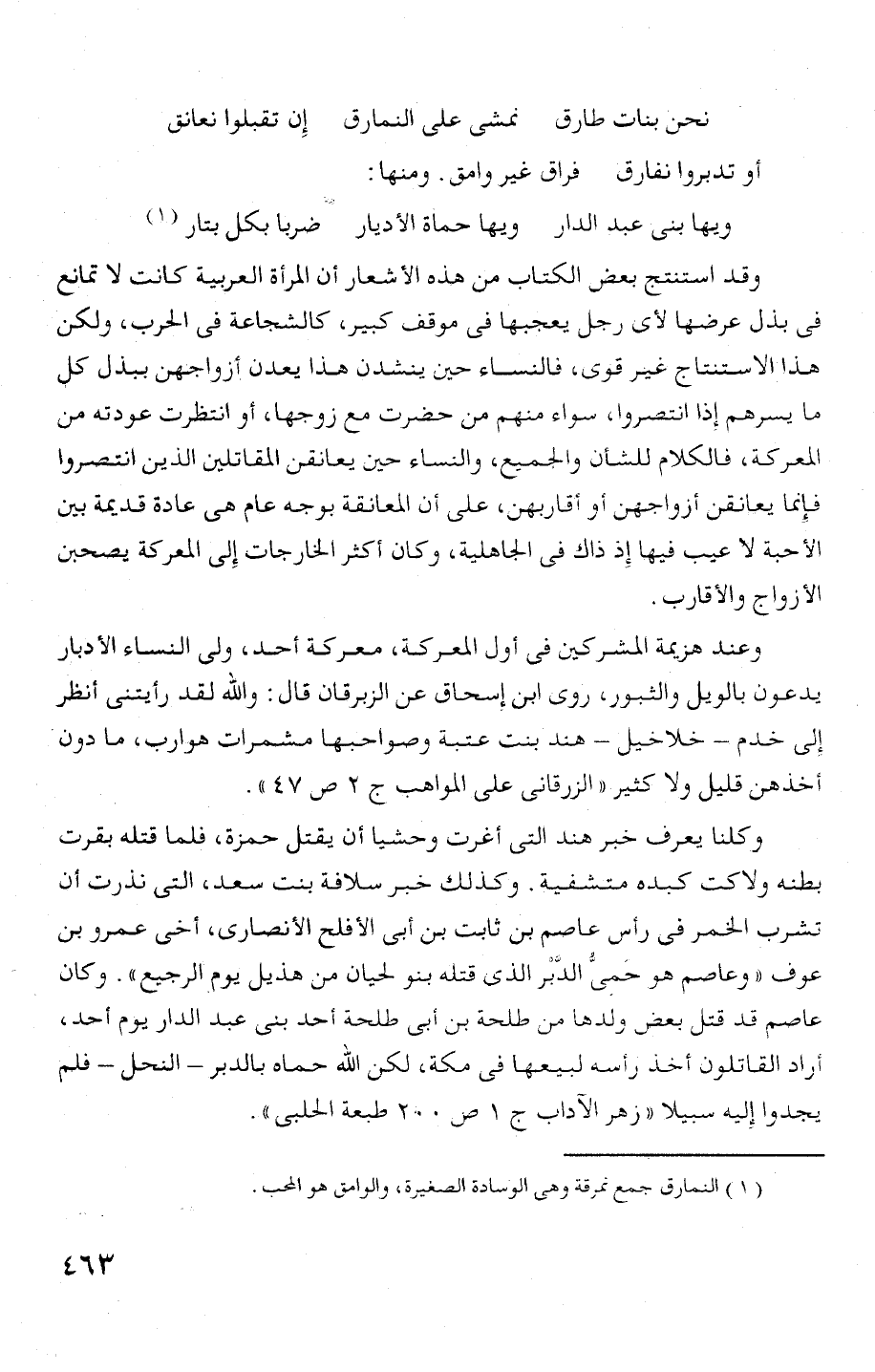 و عند محزيمة المشر ص! ت شى أول المعر ت، معر صة أحد، ولى النساء الأ دبار