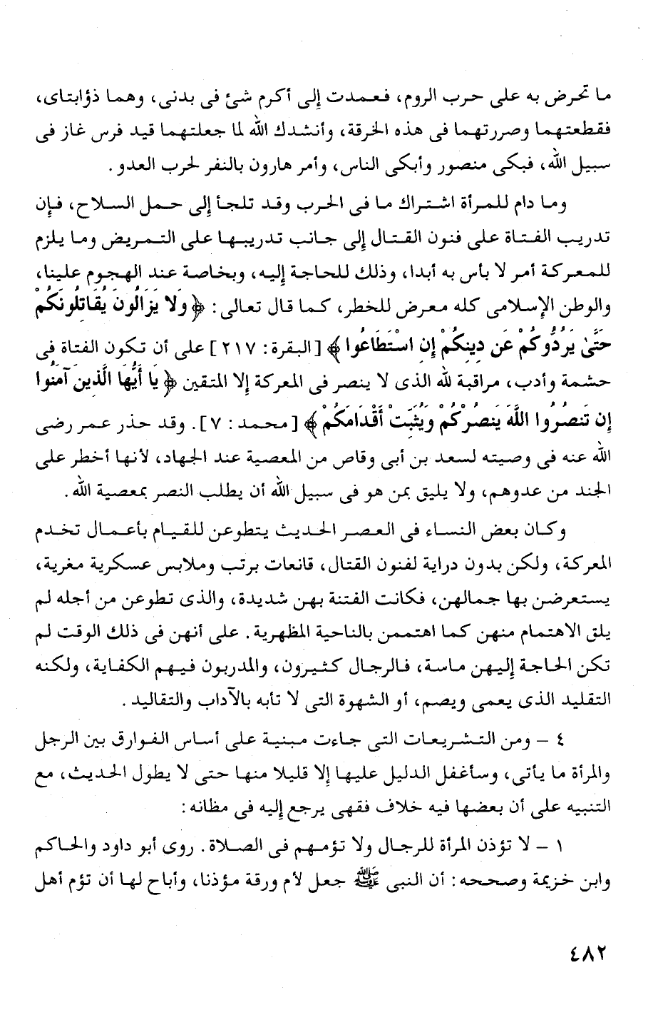 وما دام للمرأة اشتراك ما فى الحرب وقد تلض إلى حمل السلاح، فإن