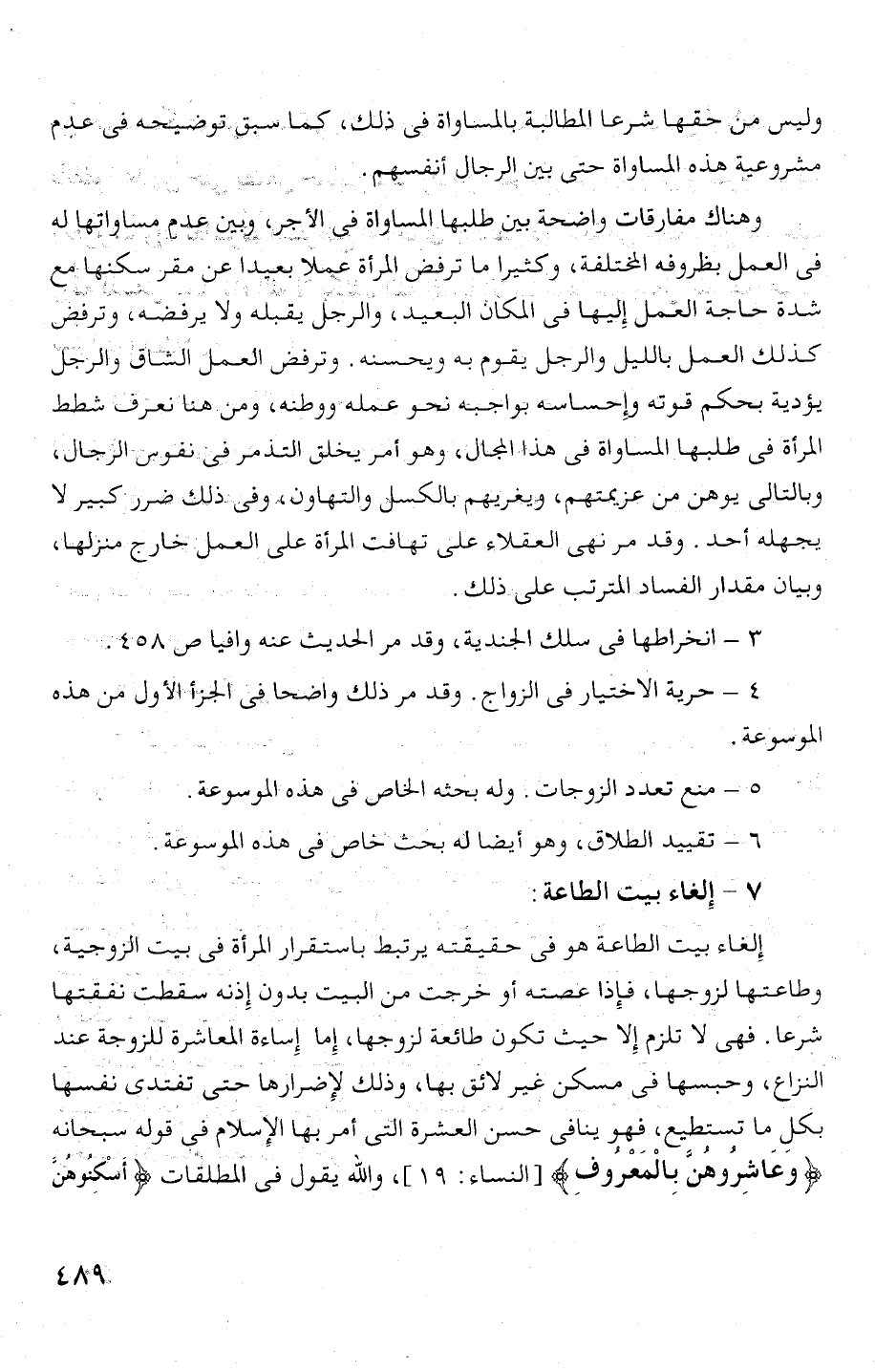 وليس من خقها شرعا المطالبة ءبالمساواة فى ذلك، كما سبتي توضيخه فى: عدم