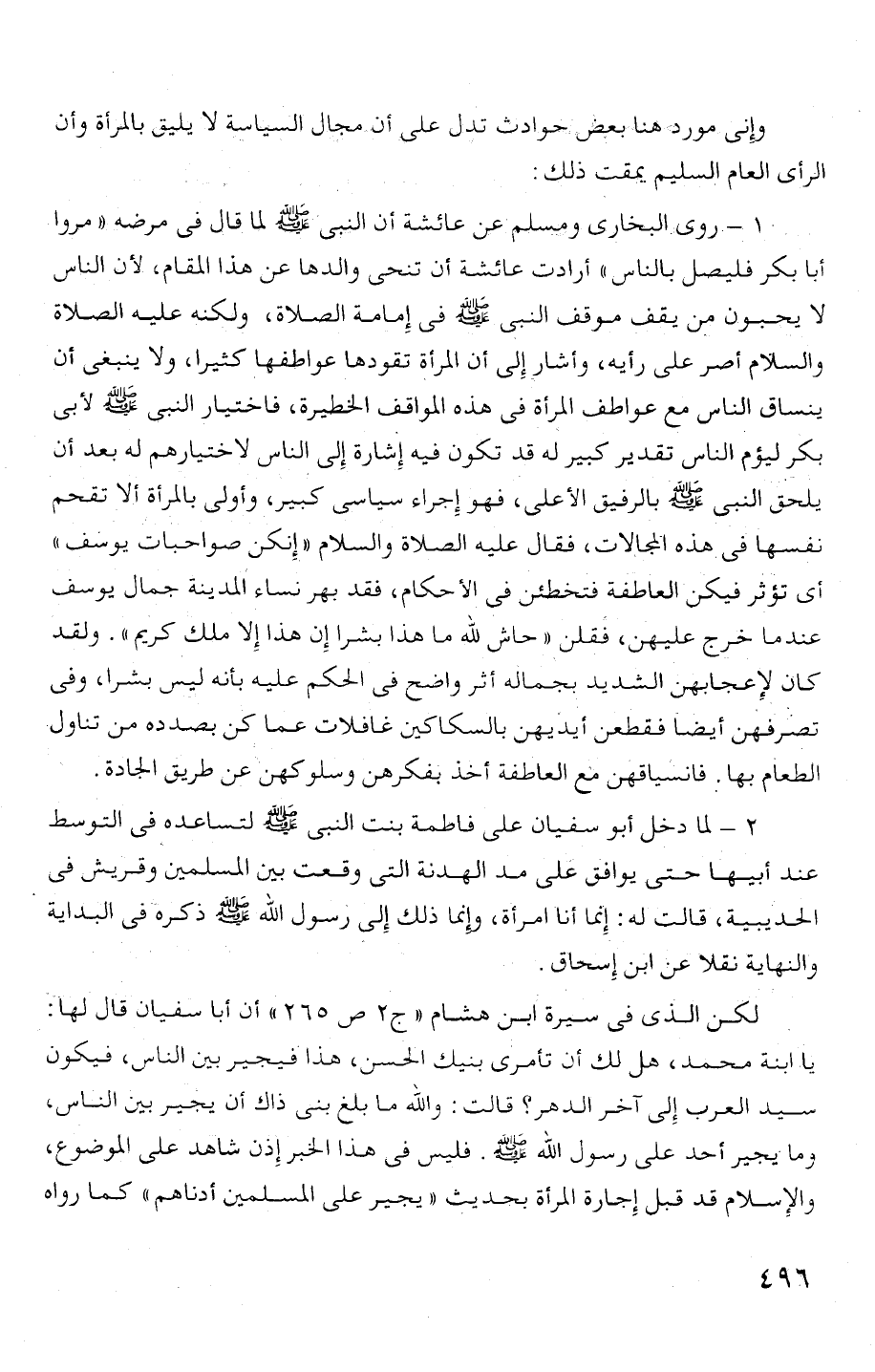 وإنى مورد هنا بعخمر حوادث تدل على أن مجال المسياسة لا يليق بالمرأة وأن