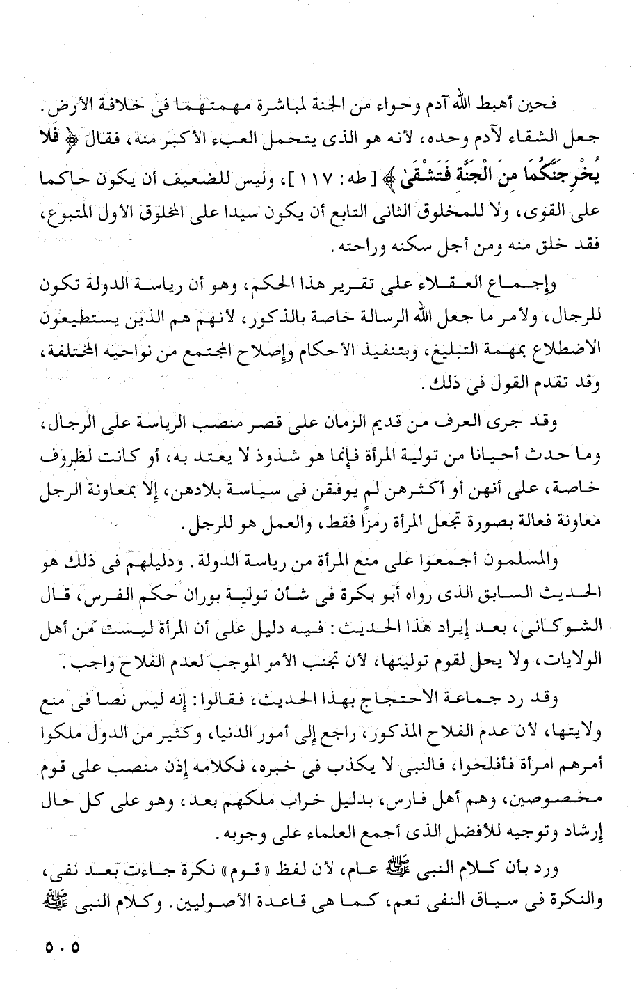 والممسلمون أجمعوا على منع المرأة من رياسة الدولة. ودليلهم فى ذلك هو