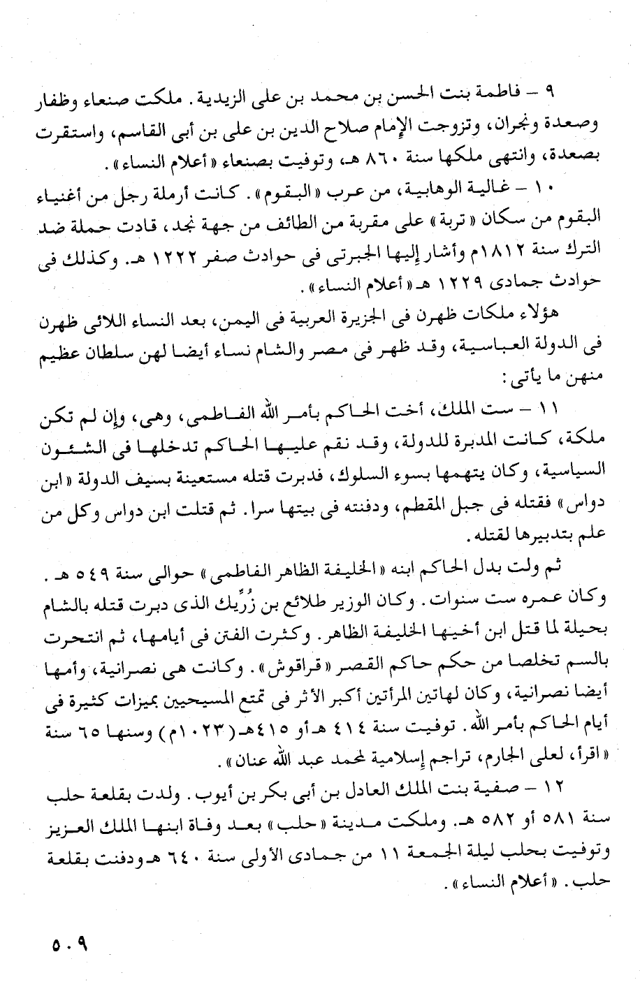 9 - فاطمة بنت الحسن بن محمد بن على الزيدية. ملكت صنعاء وظفار