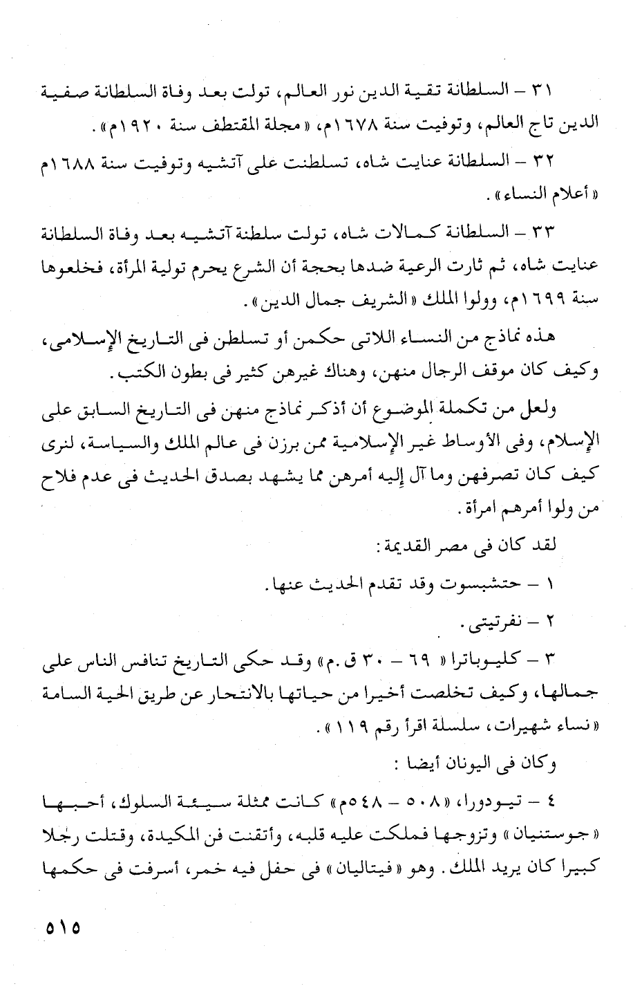 الإسلام، وفى الأ وساط غير الإسلامية ممن برزن فى عالم الملك والسياسة، لنرى