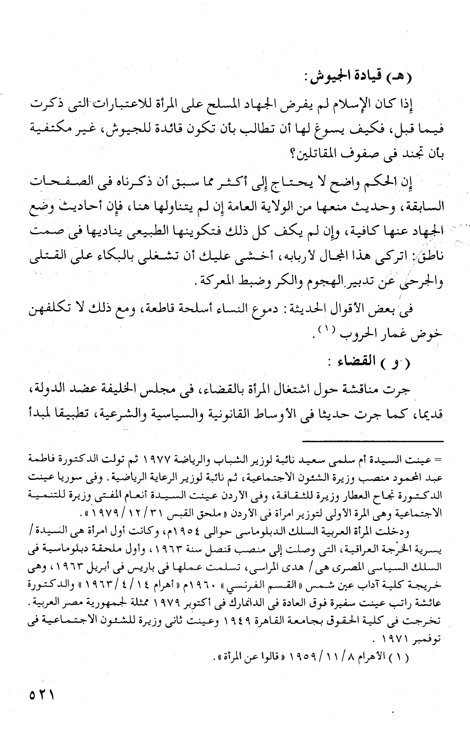 فيما قبل، فكيف يسوغ لها أن تطالب بأن تكون قائدة للجيوش، غير مكتفية