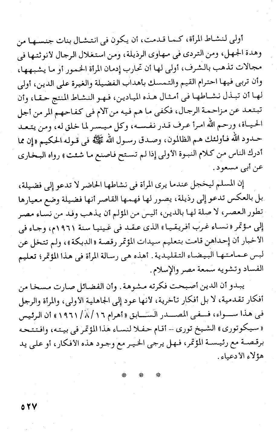 إن المسلم ليخجل عندما يرى المرأة فى نشاطها الحاضر لا تدعو إلى ففميلة،