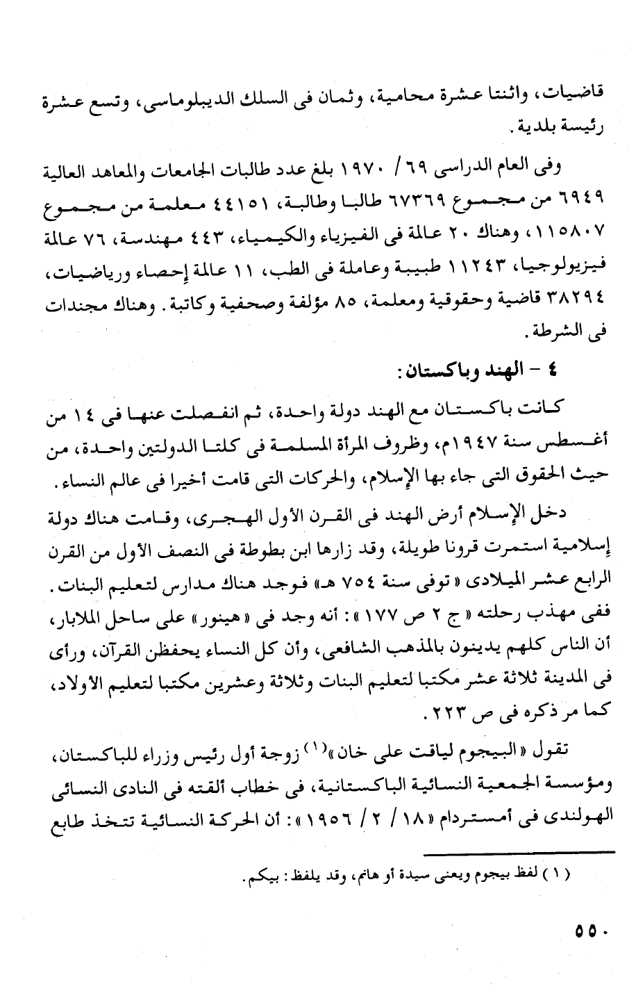 تقول " البيجوم لياقت على خان " (1) زوجة أول رئيس وزراء للباكستان،