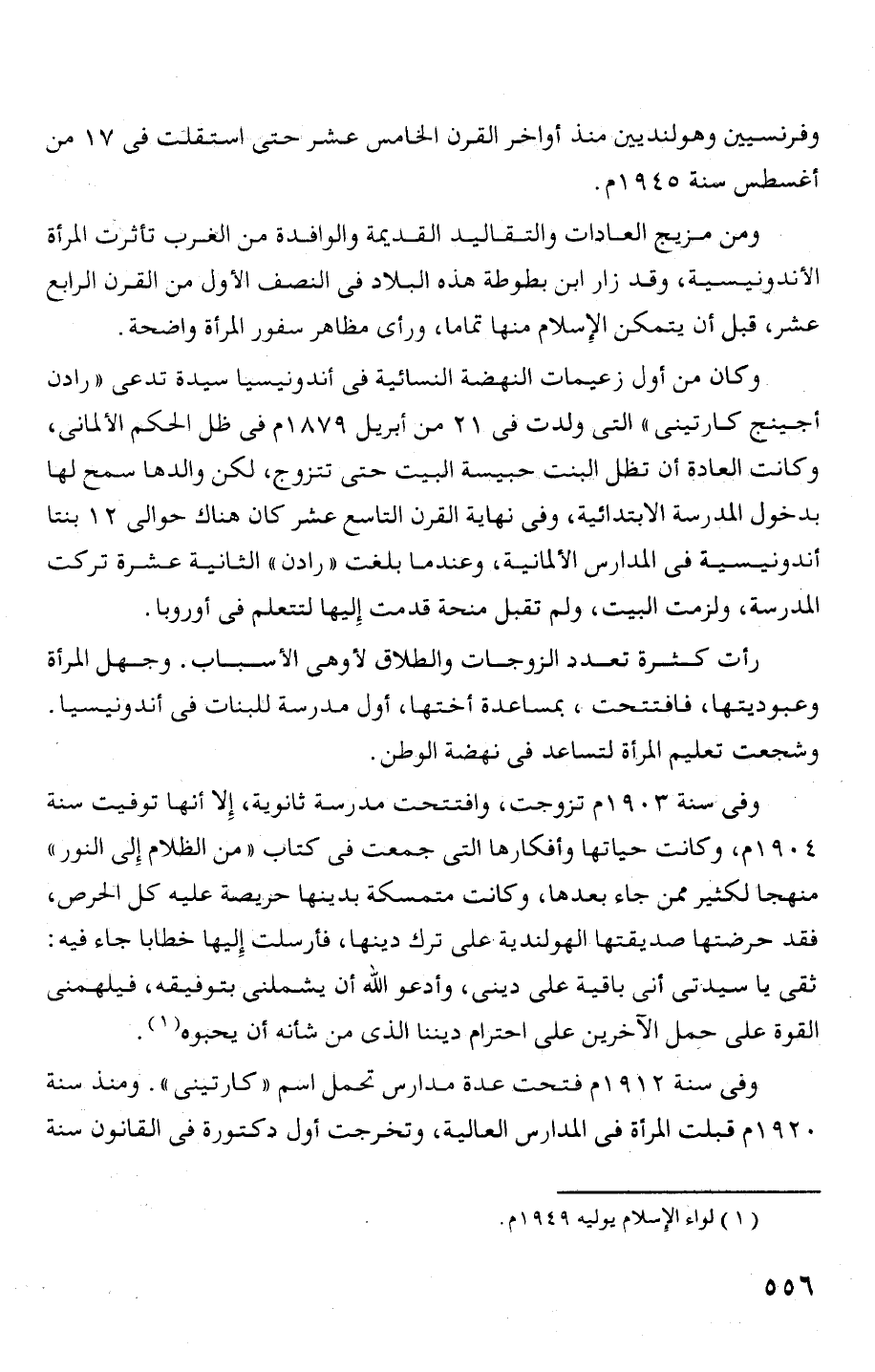 وكان من أول زعيمات النهضة النسائية فى أندونيسيا سيدة تدعى " رادن