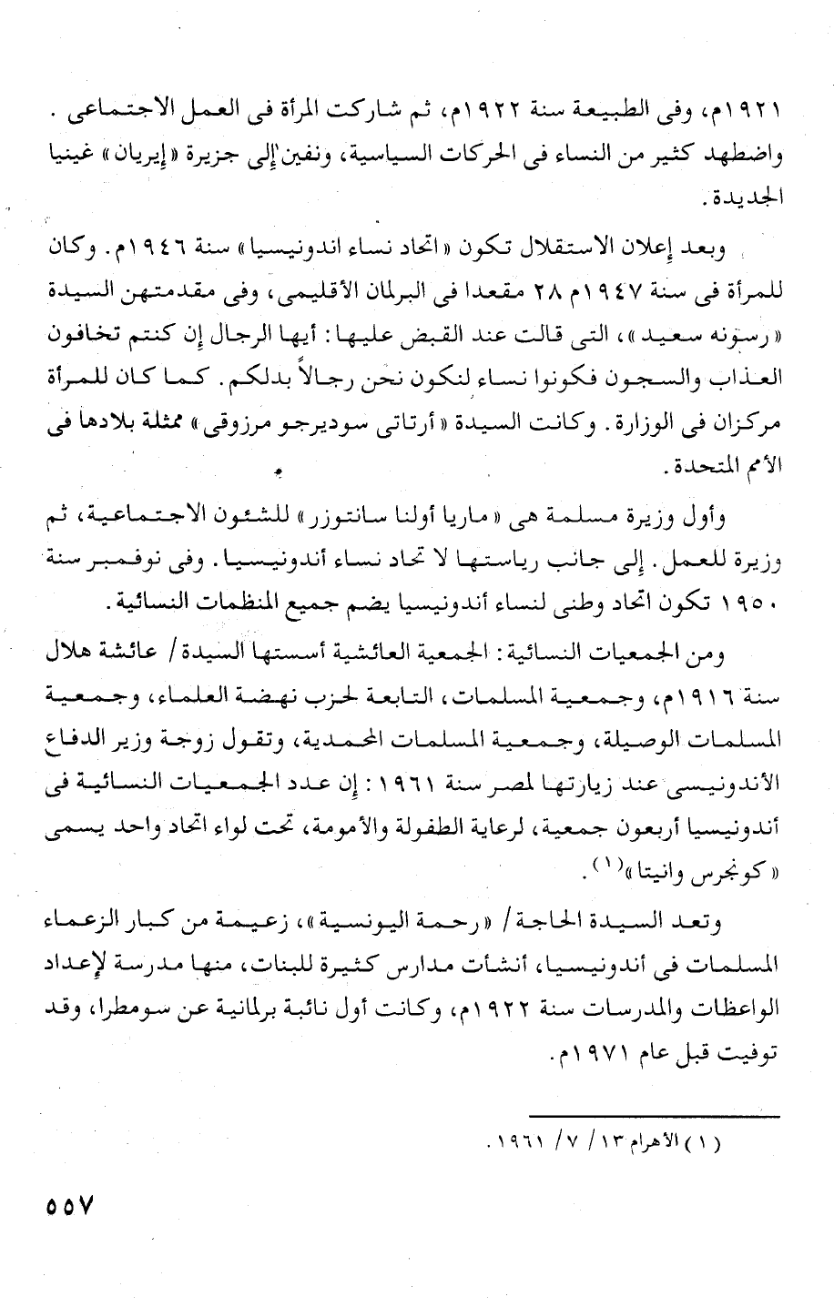 الواعظات والمدرسات سنة 2 92 1 م، وكانت أول نائبة برلمانية عن سومطرا، وقد