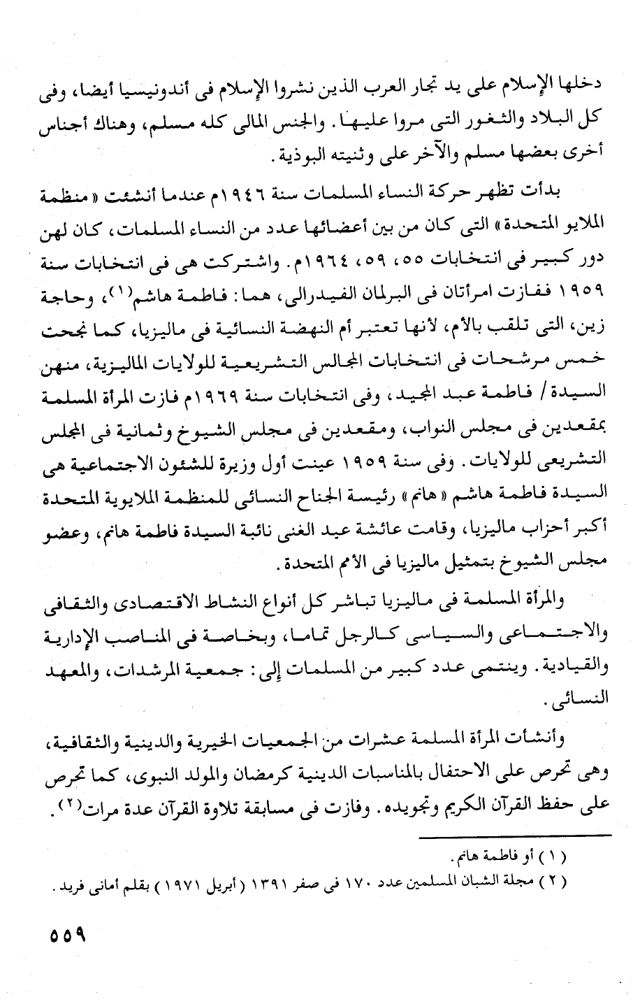 والمرأة المسلمة فى ماليزيا تباشر كل أنواع النشاط الافتصادى والثقافى