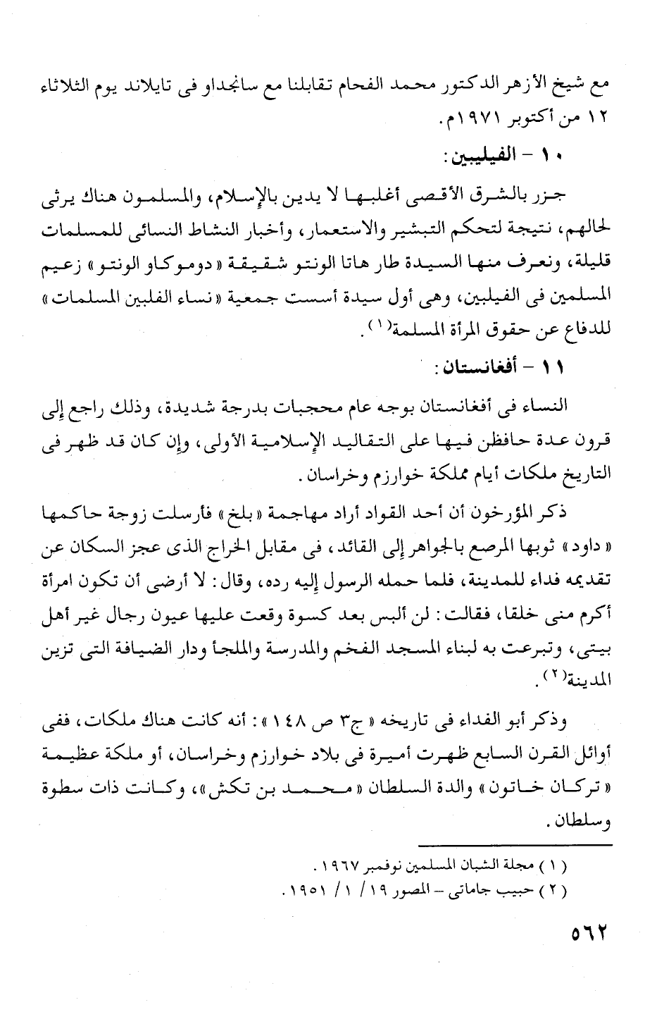 لحالهم، نتيجة لتحكم التبشير والاستعمار، وأخبار النشاط النسائى للمسلمات