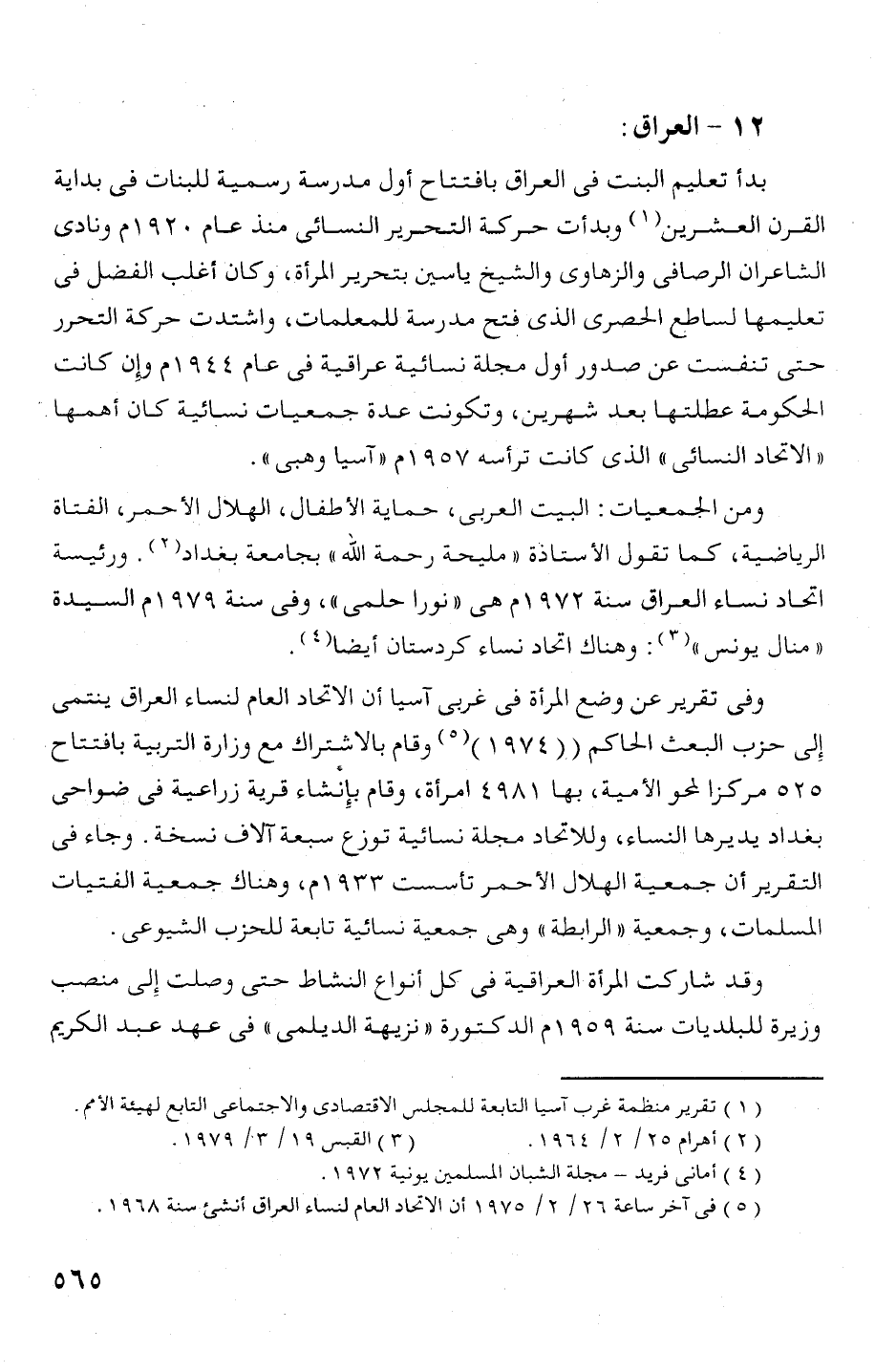 (5) فى اخر ساعة 26/ 2 / 975 1 أن الاتحاد العام لنساء العراق أنشئ سنة 968 1.