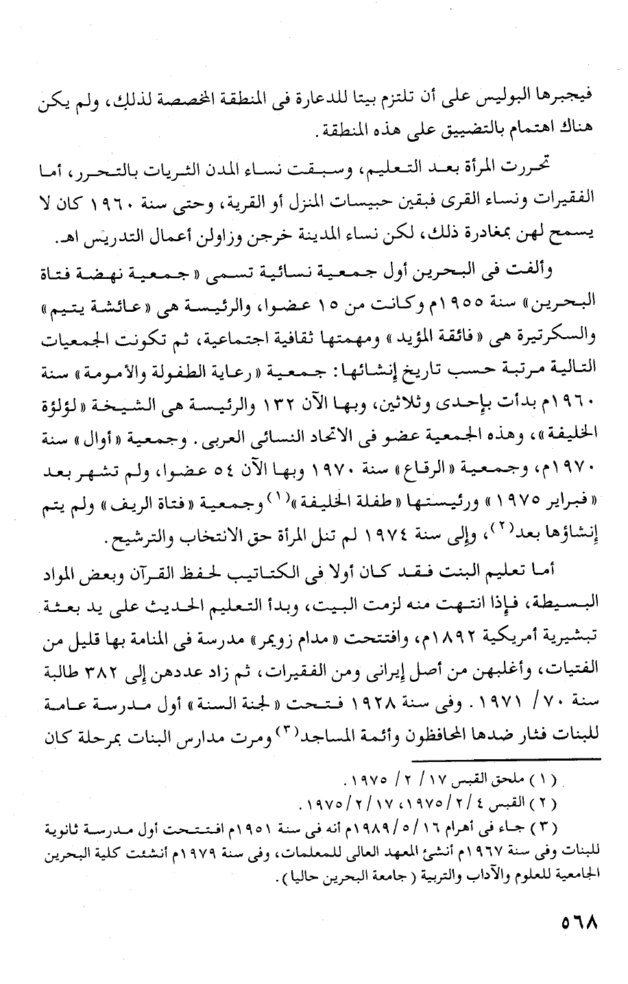 للبنات وفى سنة 967 1 م أن! ثئ المعهد العالى للمعلمات، وفى سنة 679 1 م أنشئت كلية البحرين