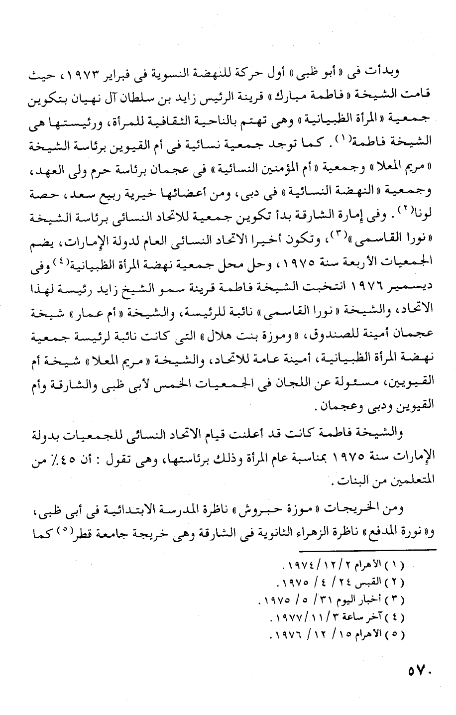 الإمارات سنة 975 1 بمناسبة عام المرأة وذلك برئاستها، وهى تقول: أن 45 % من