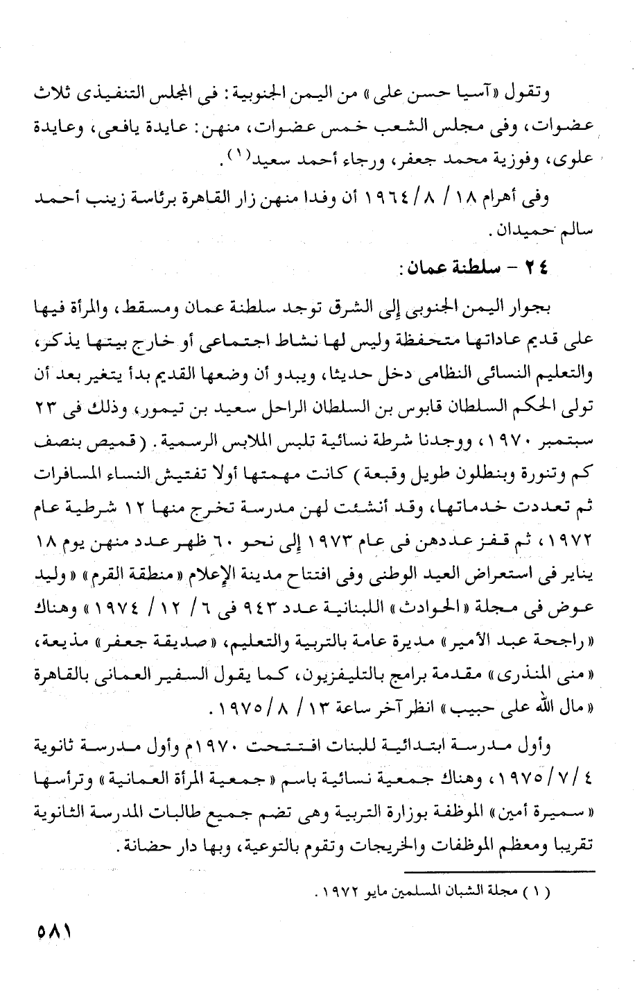 وتقول " اسيا حسن على " من اليمن الجنوبية: فى المجلس! التنفيذى ثلاث